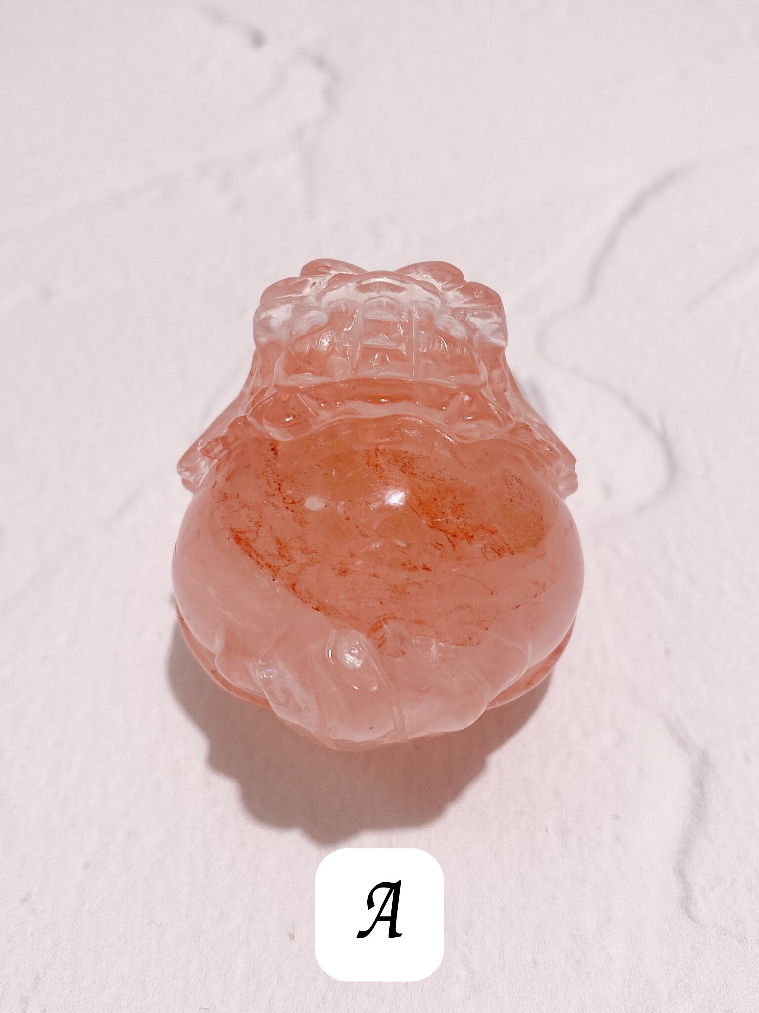 ミディアムサイズの、透明感溢れるオレンジファイアークォーツ龍亀ちゃんです!