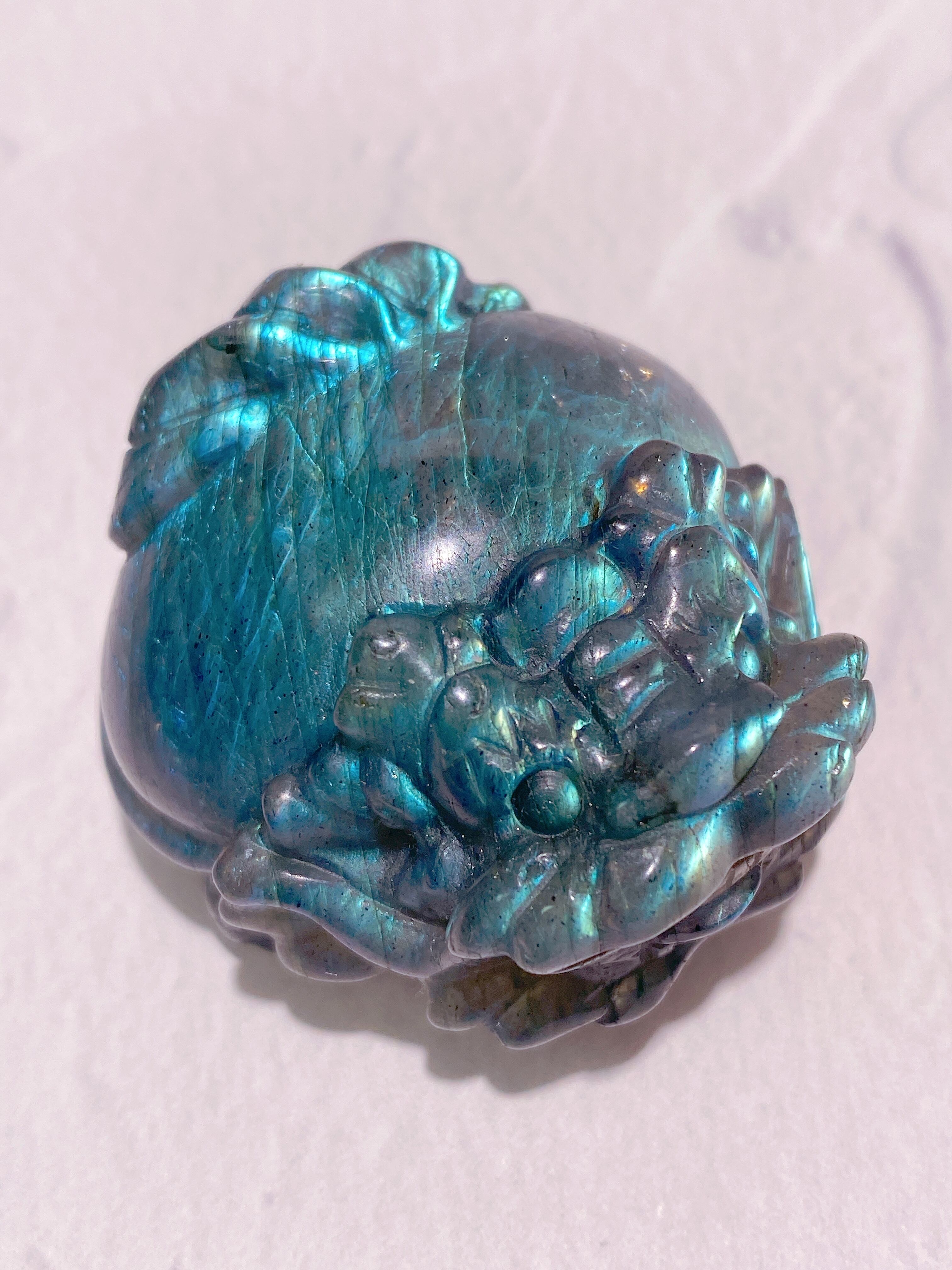 青緑色のラブラドレッセンスが大変美しいラブラドライト龍亀ちゃん。