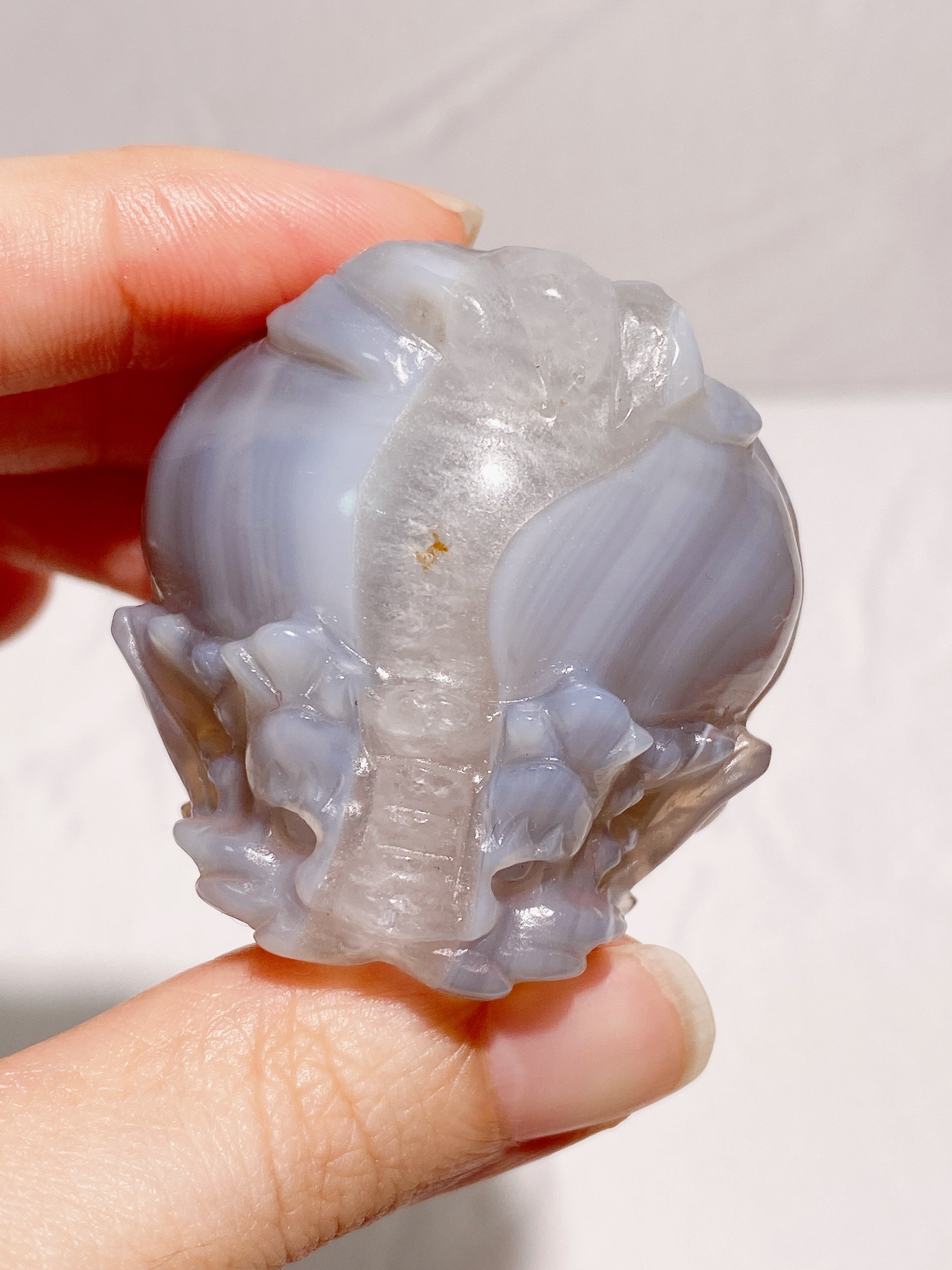 グレーカラーの中にほんのり水色っぽさも感じる色味で、一瞬ブルーレースアゲートかと勘違いしそうになりますが、アゲートです(笑)