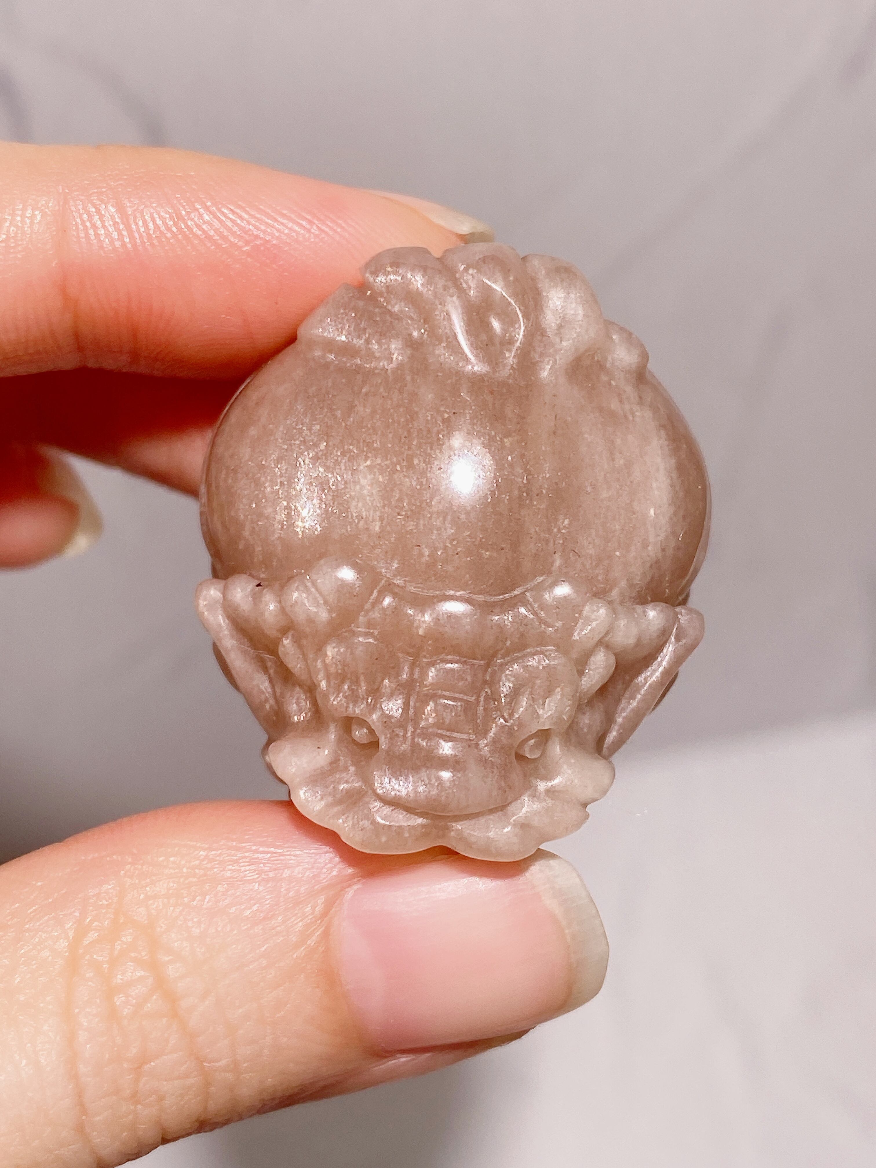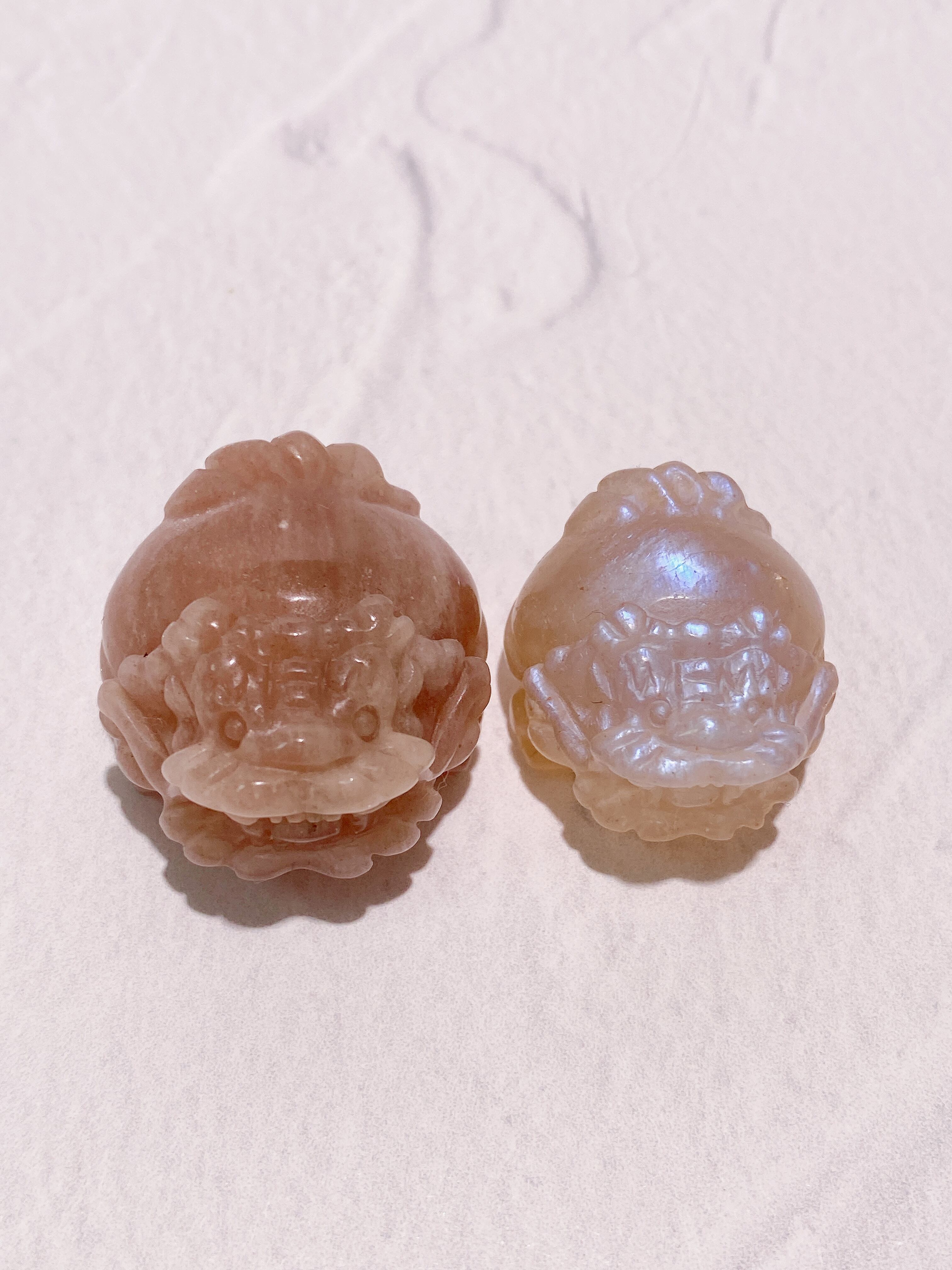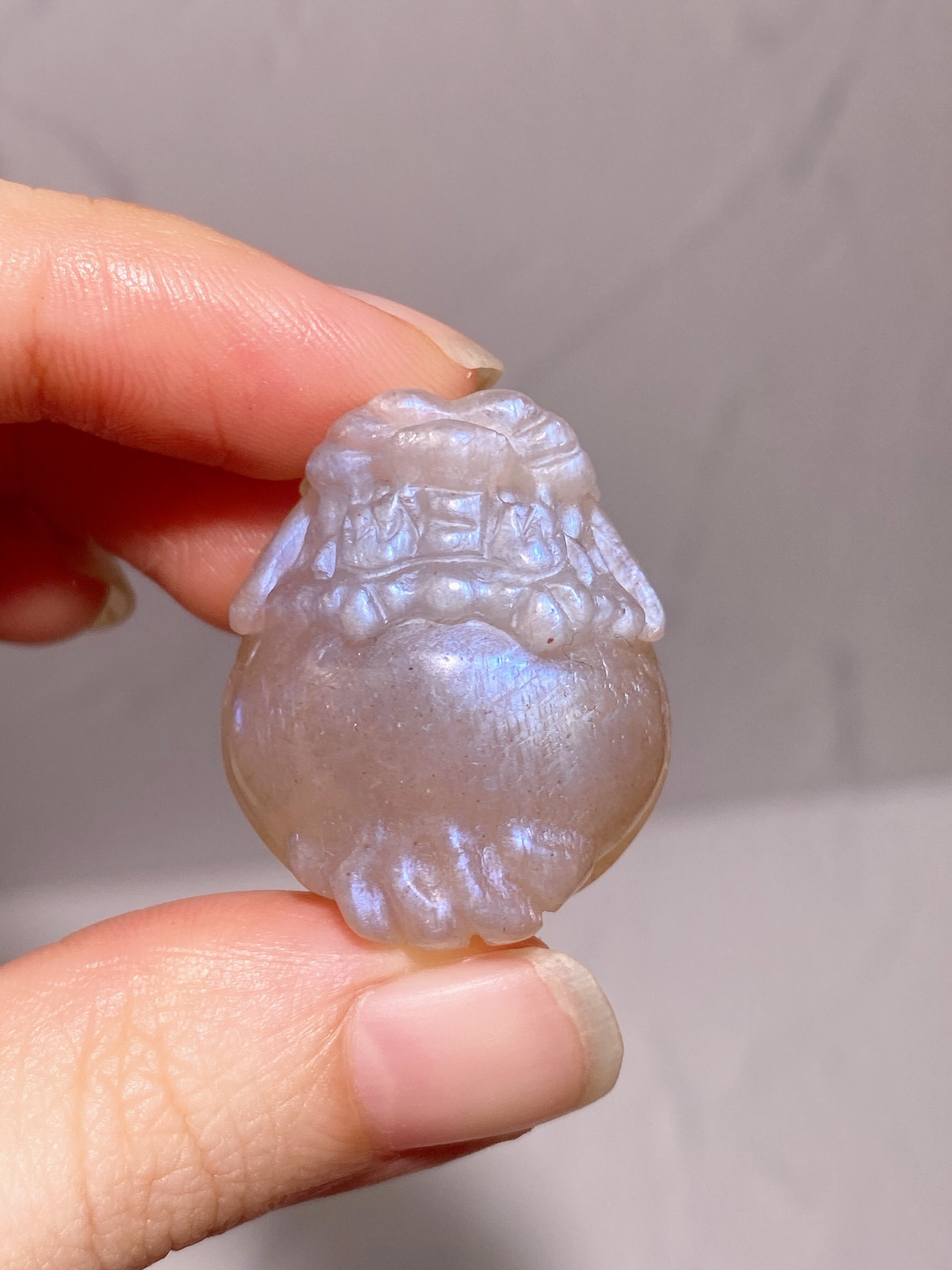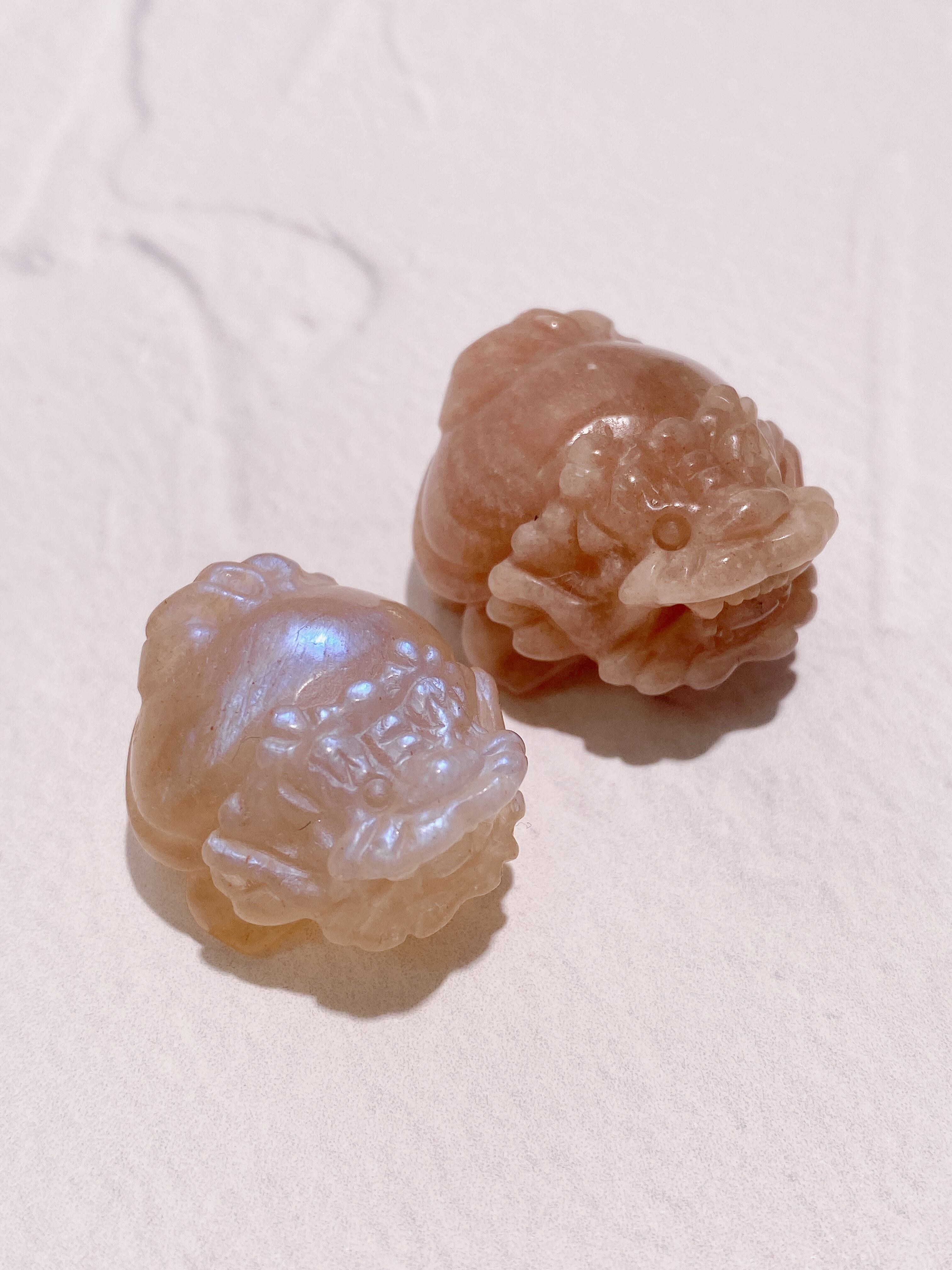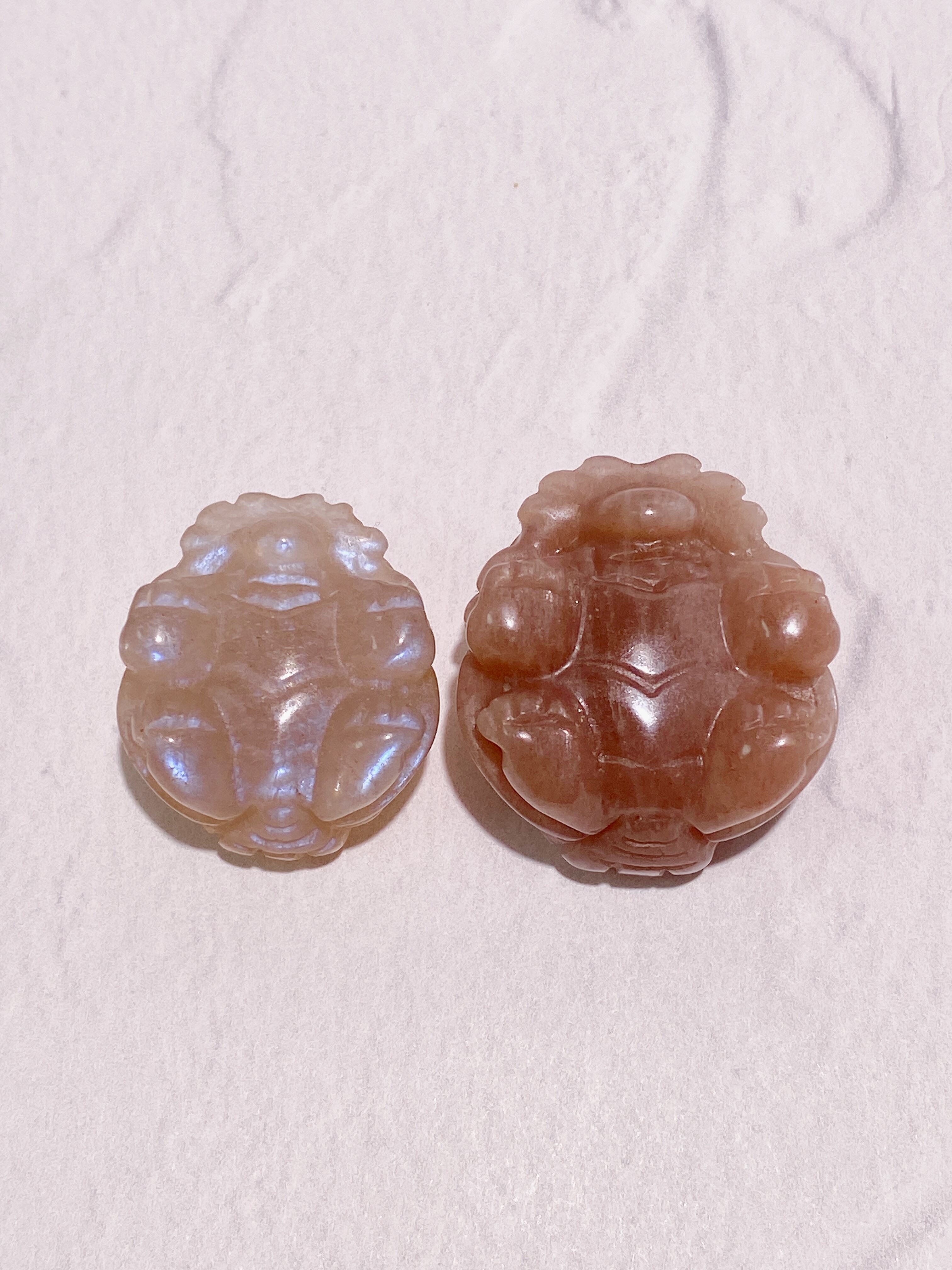 ミニサイズのブルーフラッシュが美しいムーンストーンと高品質なピーチムーンストーンの龍亀ちゃんを少しお得なセットにしました!