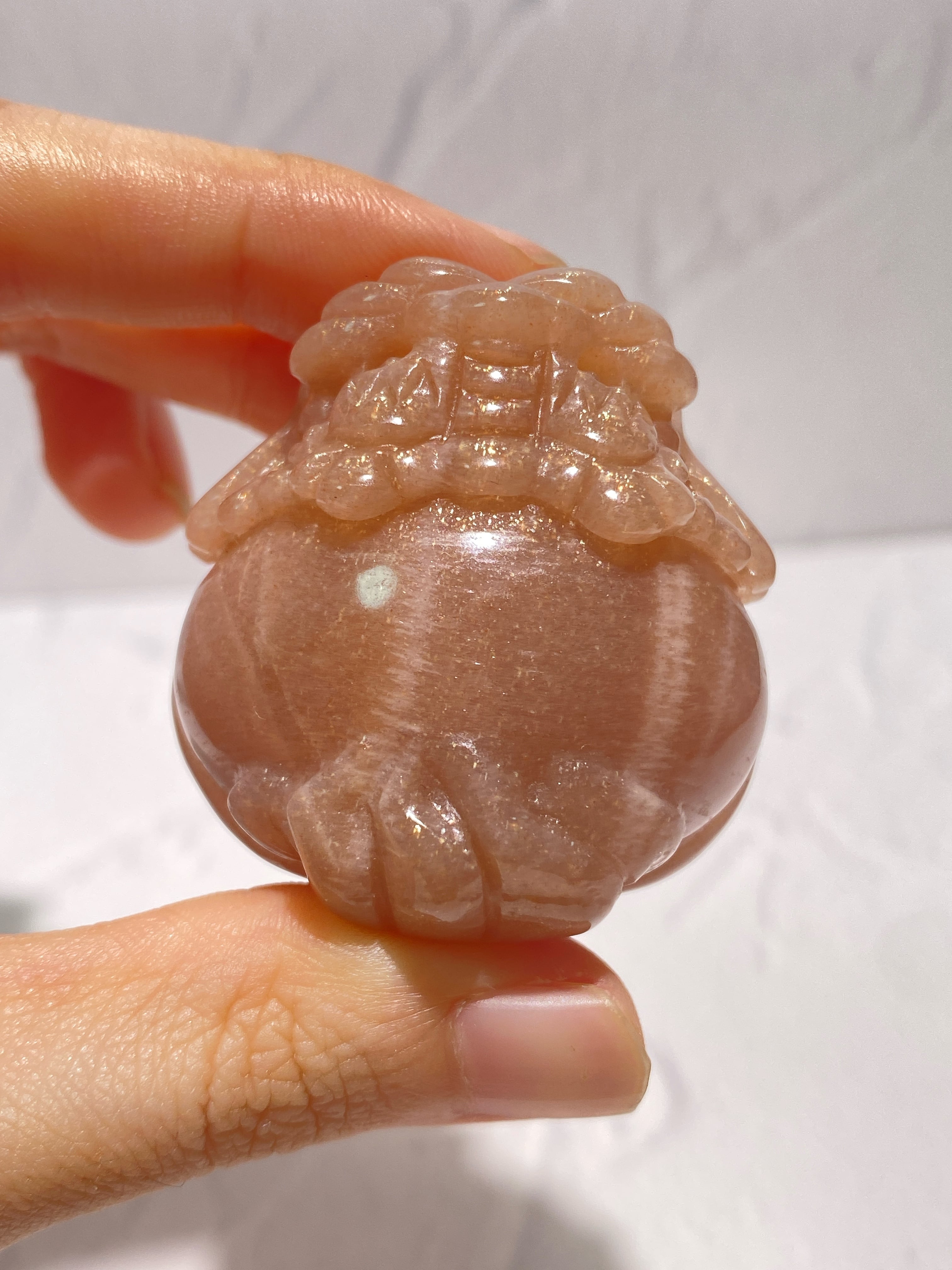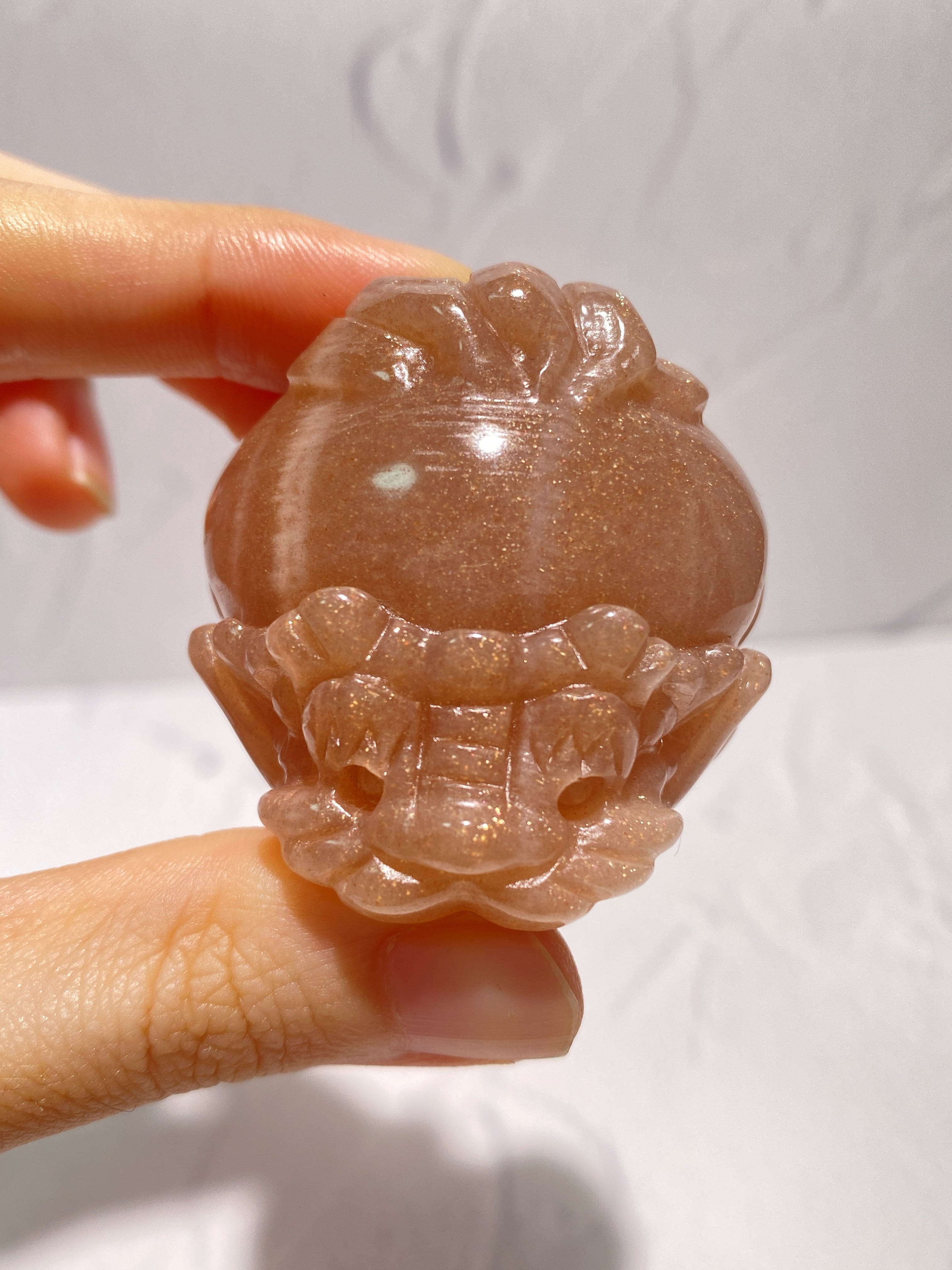 【キラキラシャワー】ピーチムーンストーン龍亀(ロングイ)