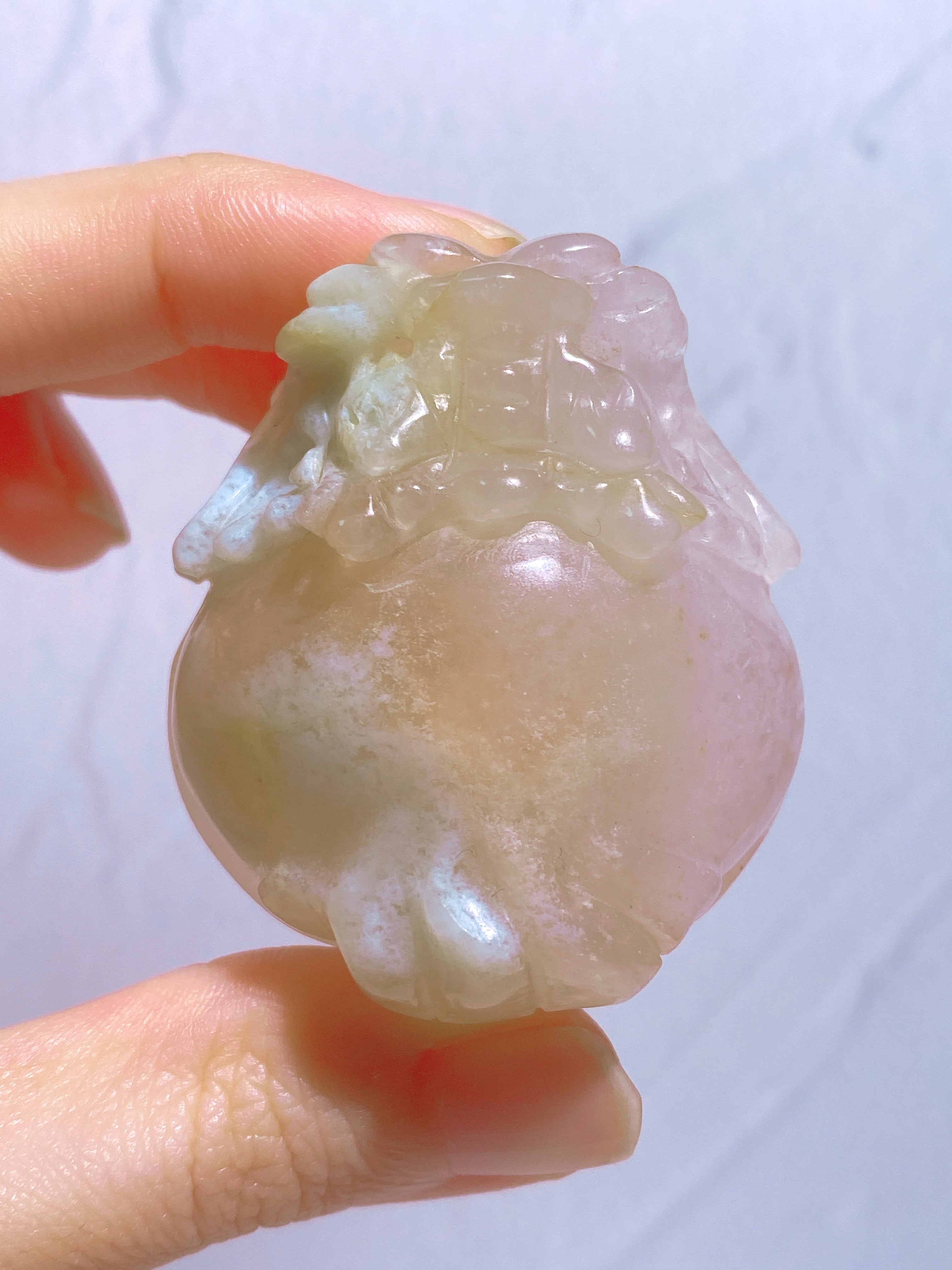 淡く優しいグリーンがポイントの可愛いフラワーアゲートの龍亀ちゃん。