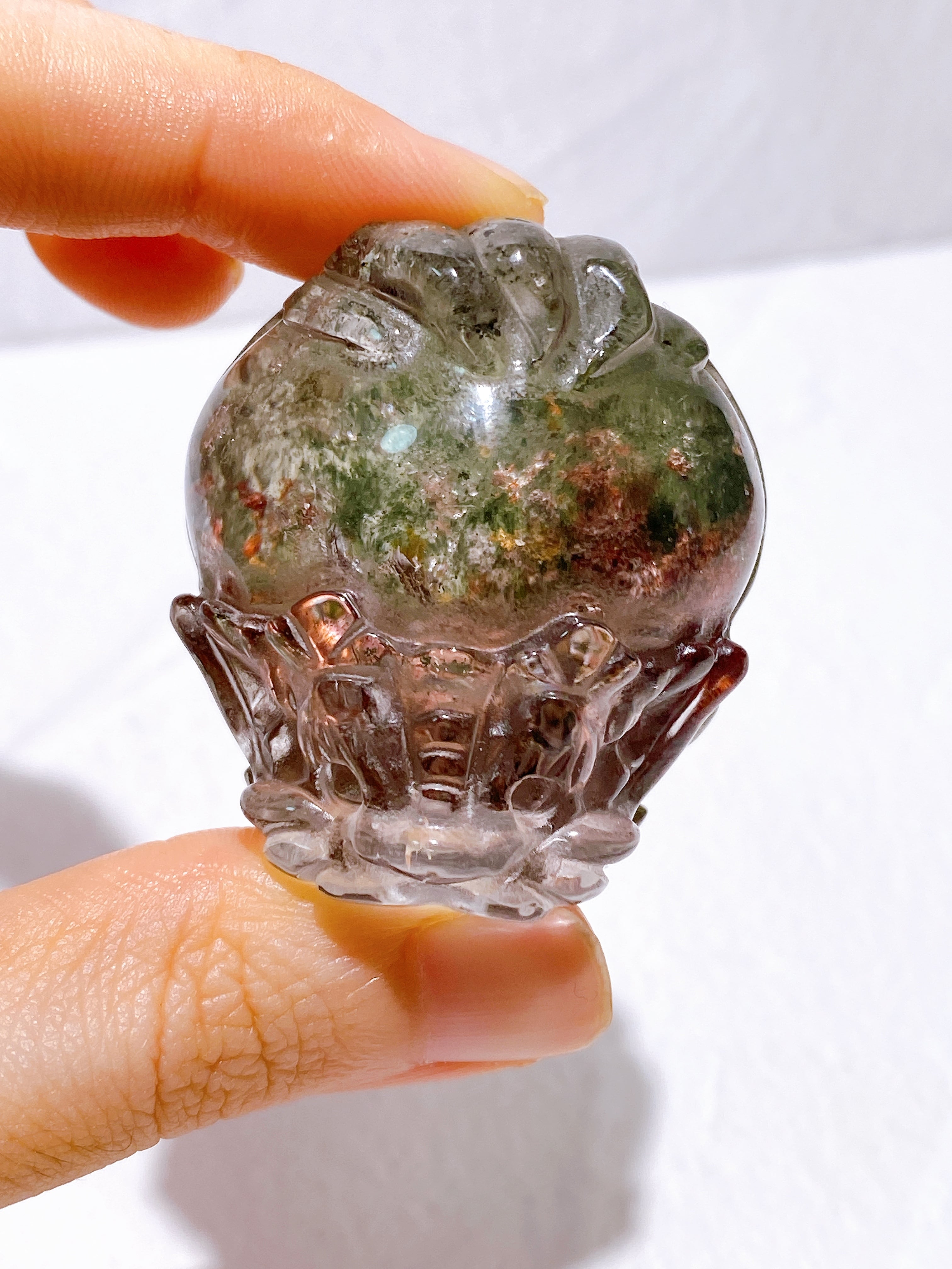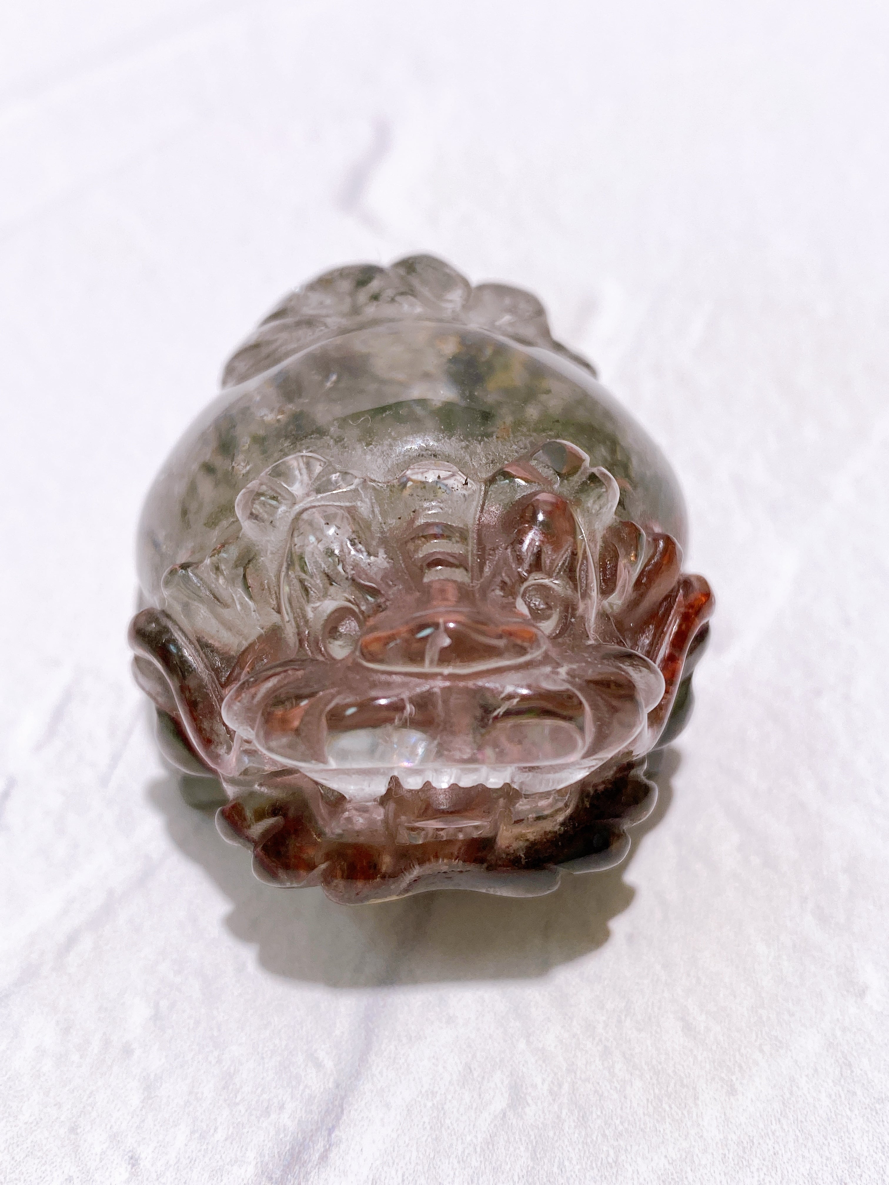 この子はクォーツの透明度が高いため、内部の景色を非常に明瞭に見ることができます。
