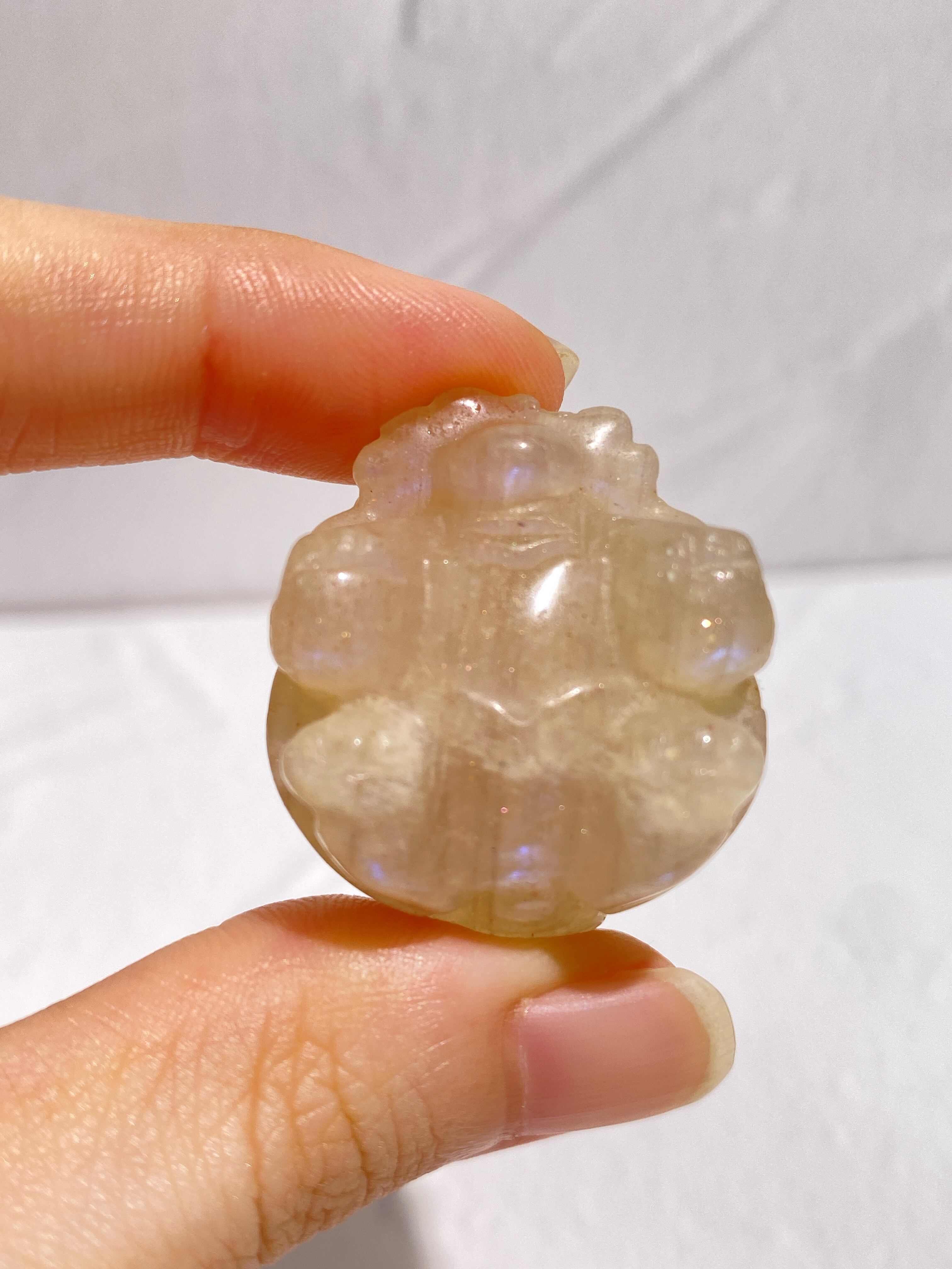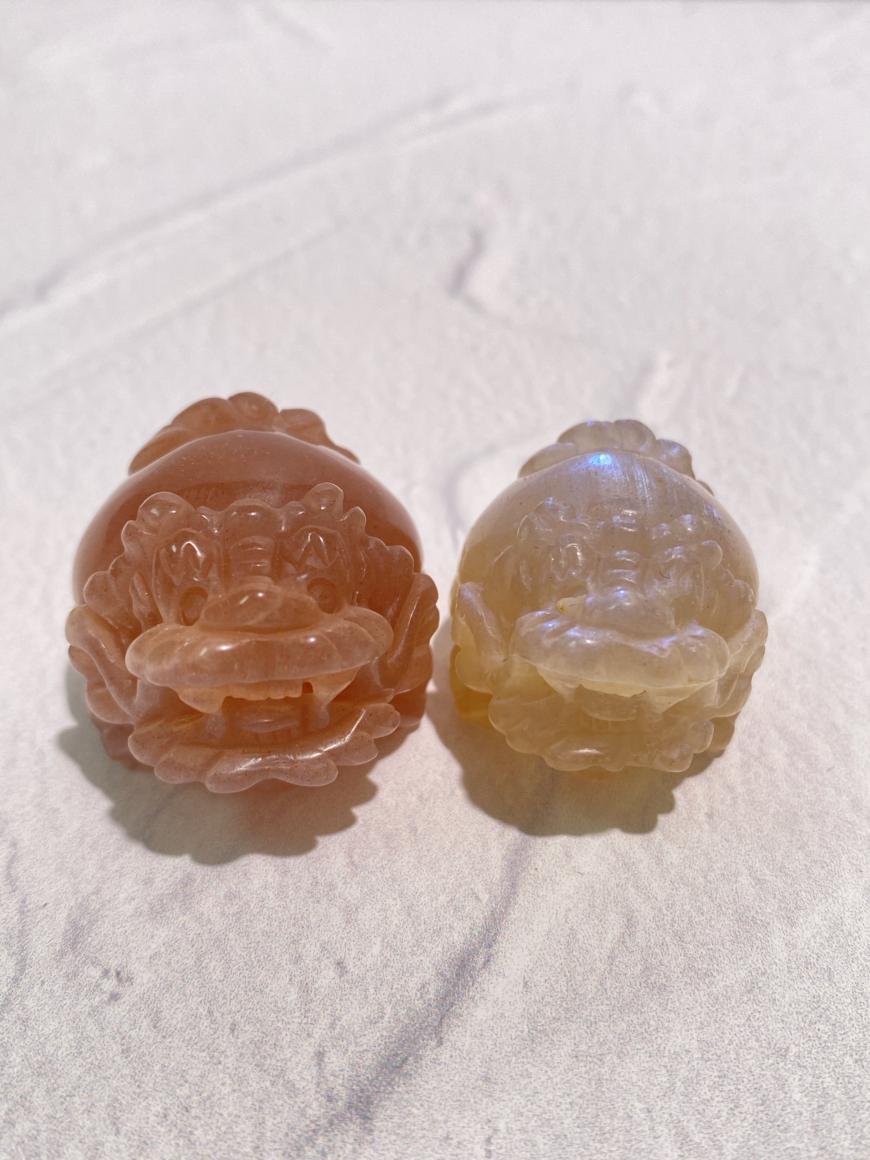 ミニサイズのブルーフラッシュが美しいムーンストーンと高品質なピーチムーンストーンの龍亀ちゃんを少しお得なセットにしました!