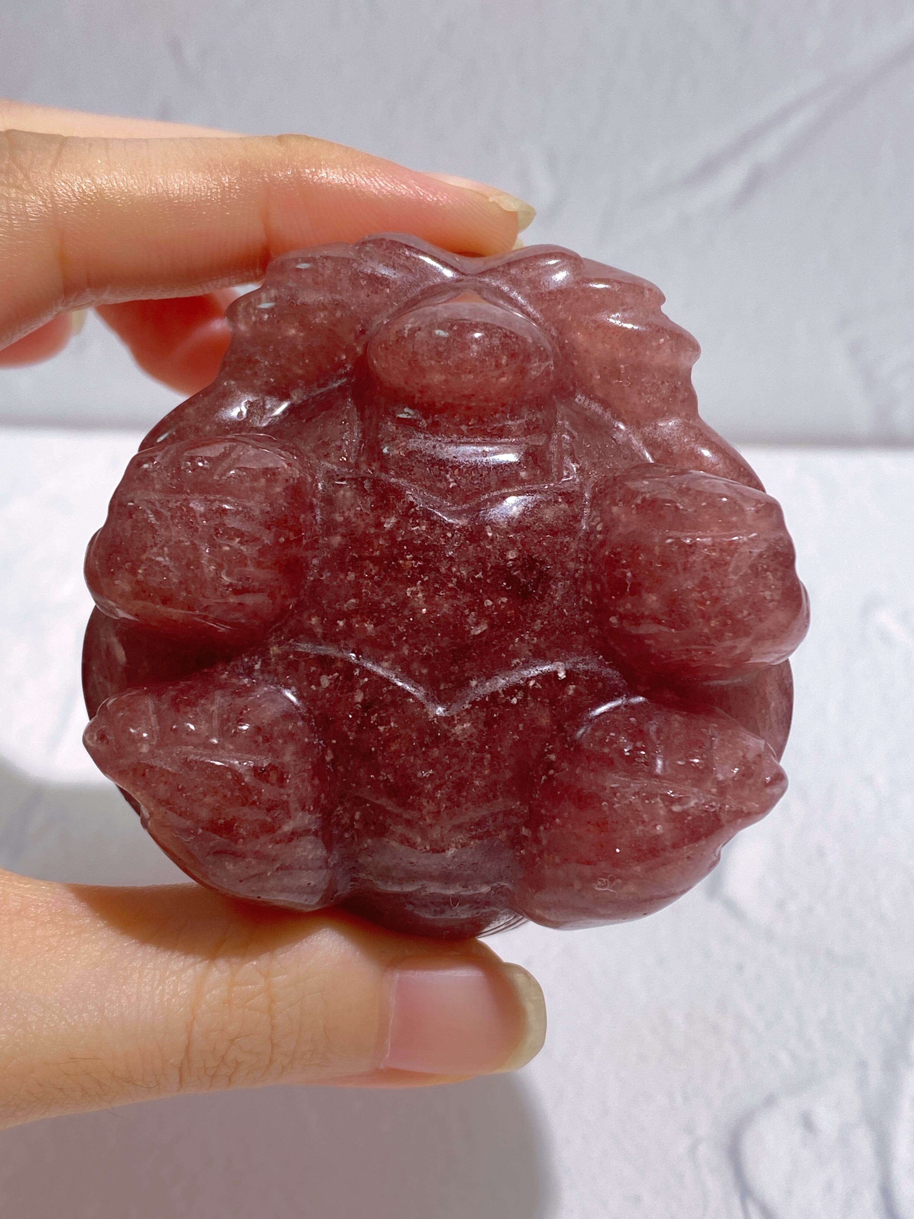 全身にラメが散りばめられたように、美しくキラキラ光るストロベリークォーツの龍亀ちゃんが入荷しました!