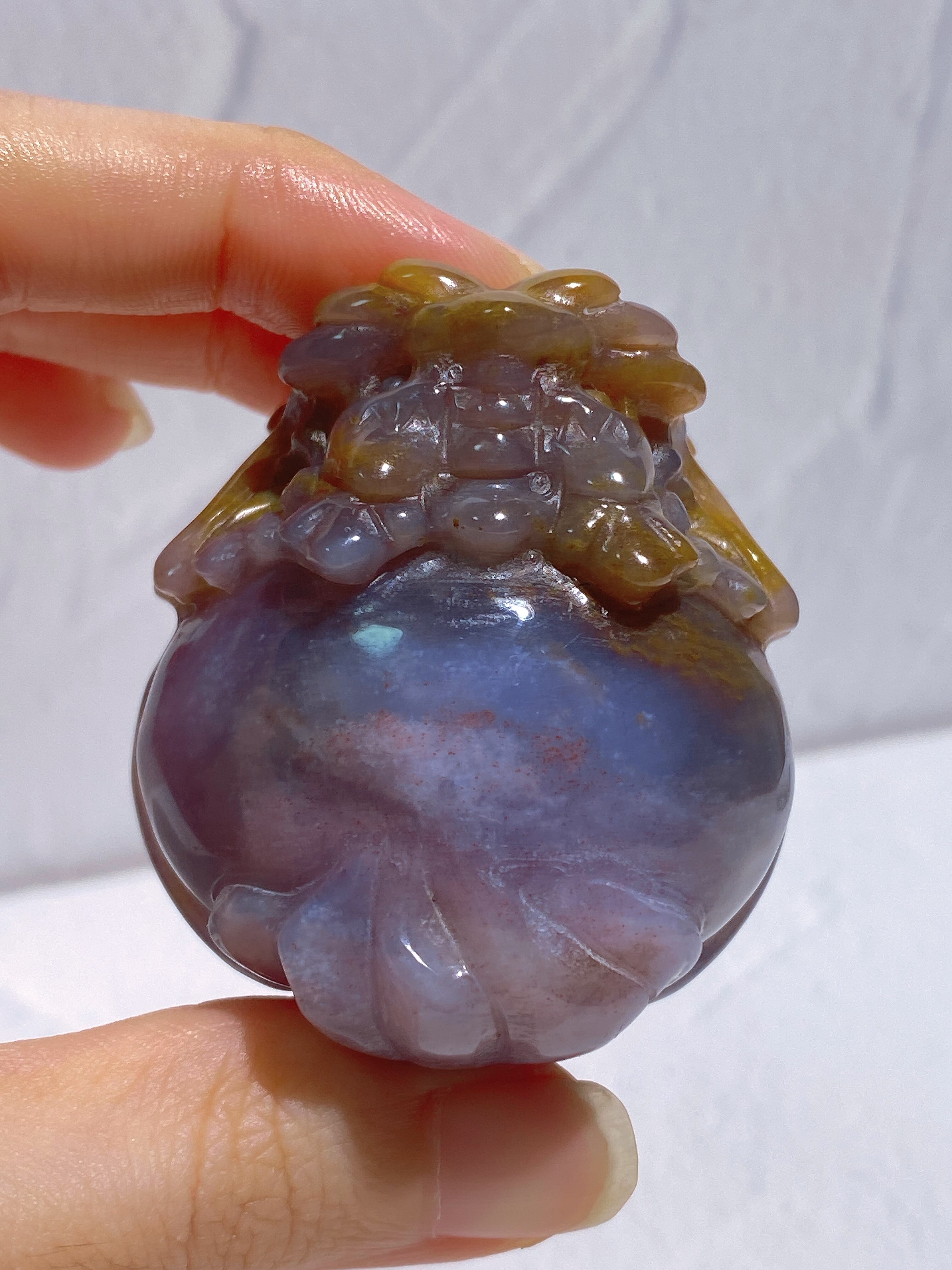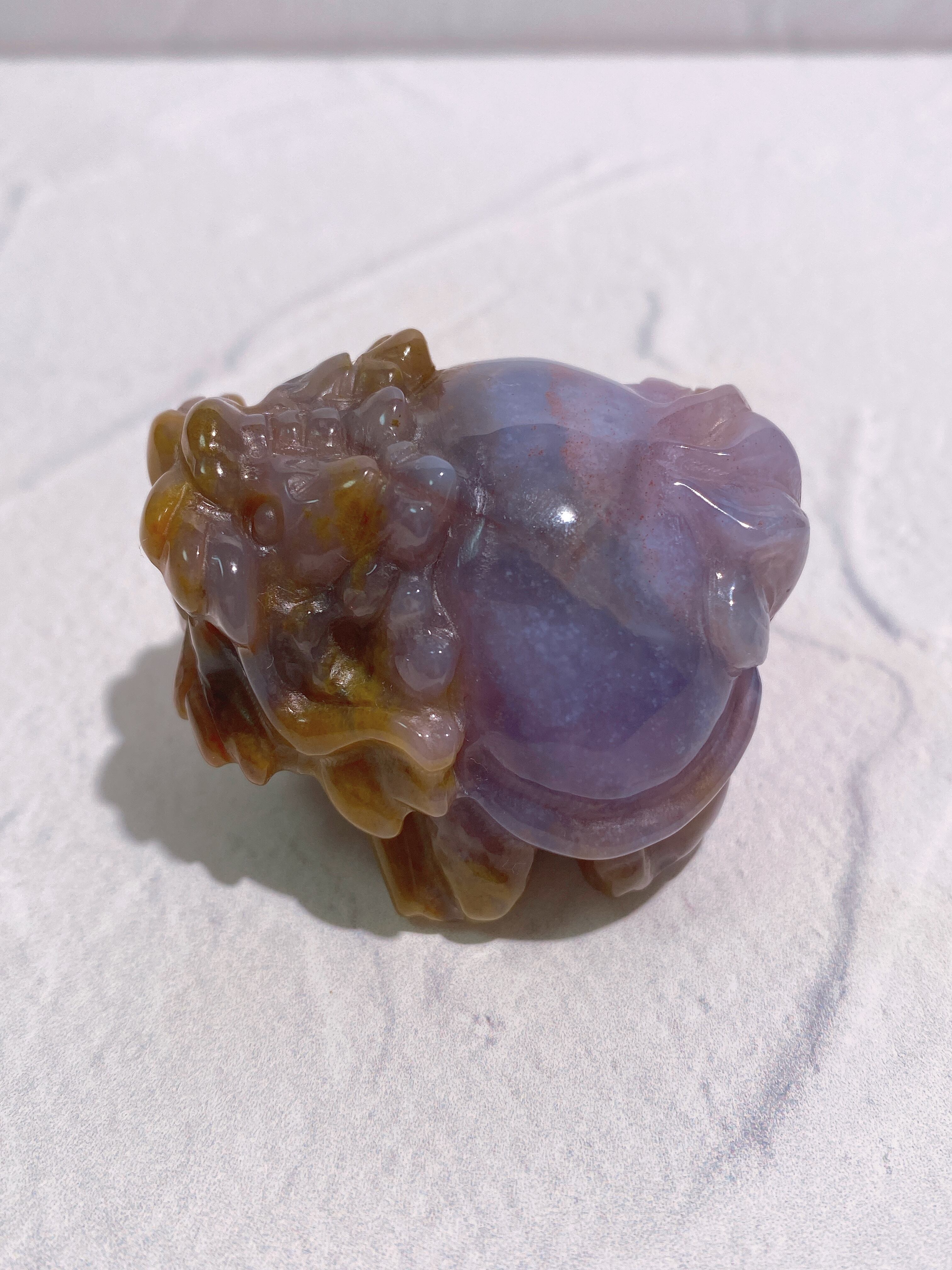 藤色と明るいブラウンの組み合わせが珍しい、オーシャンジャスパーの龍亀ちゃんです。