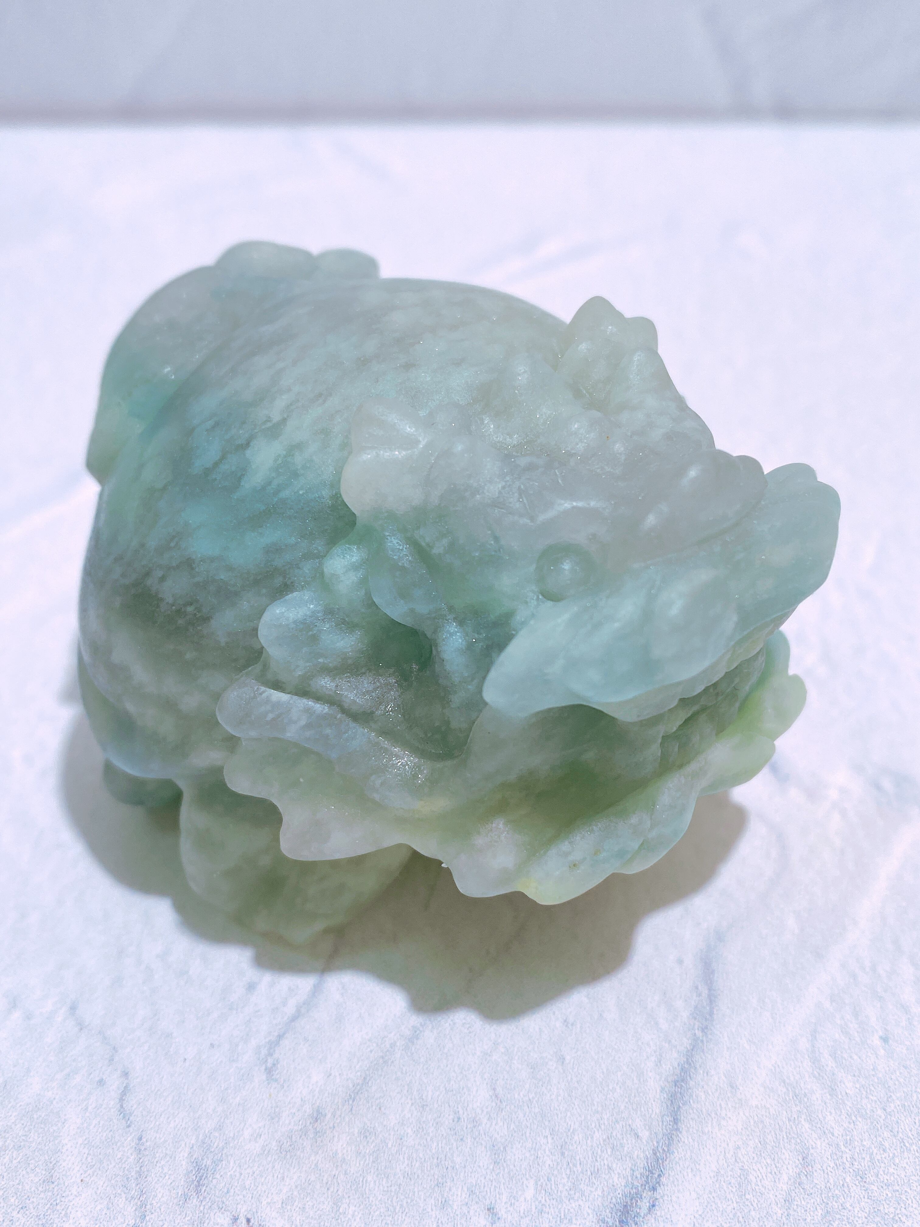 清浄で無垢なエネルギーを持つブルーカルサイトの龍亀ちゃんは、深い浄化と癒しをもたらします。