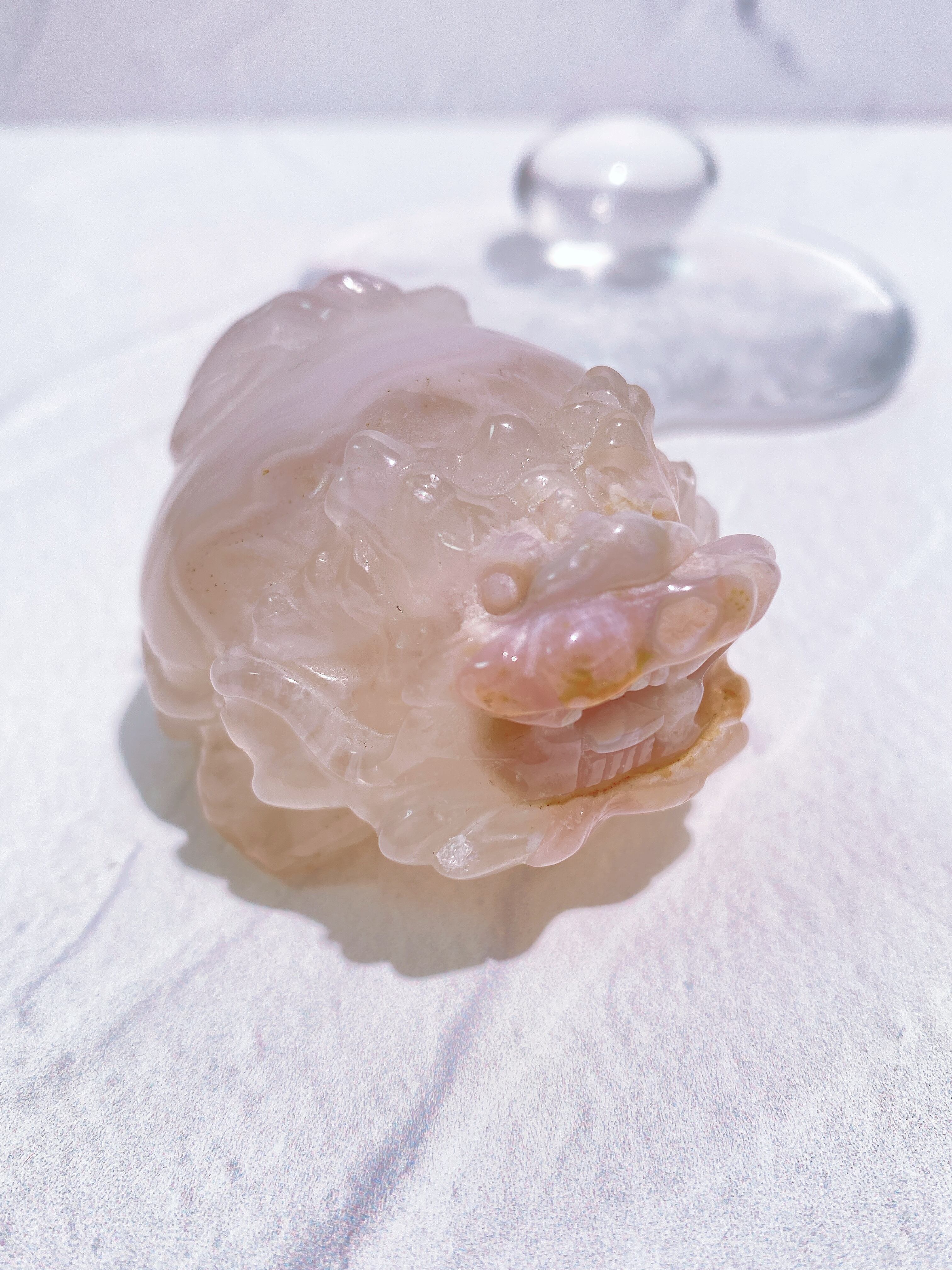 お尻にキラキラドゥルージーの入った、可愛くて品のある素敵なフラワーアゲートの龍亀ちゃんです。