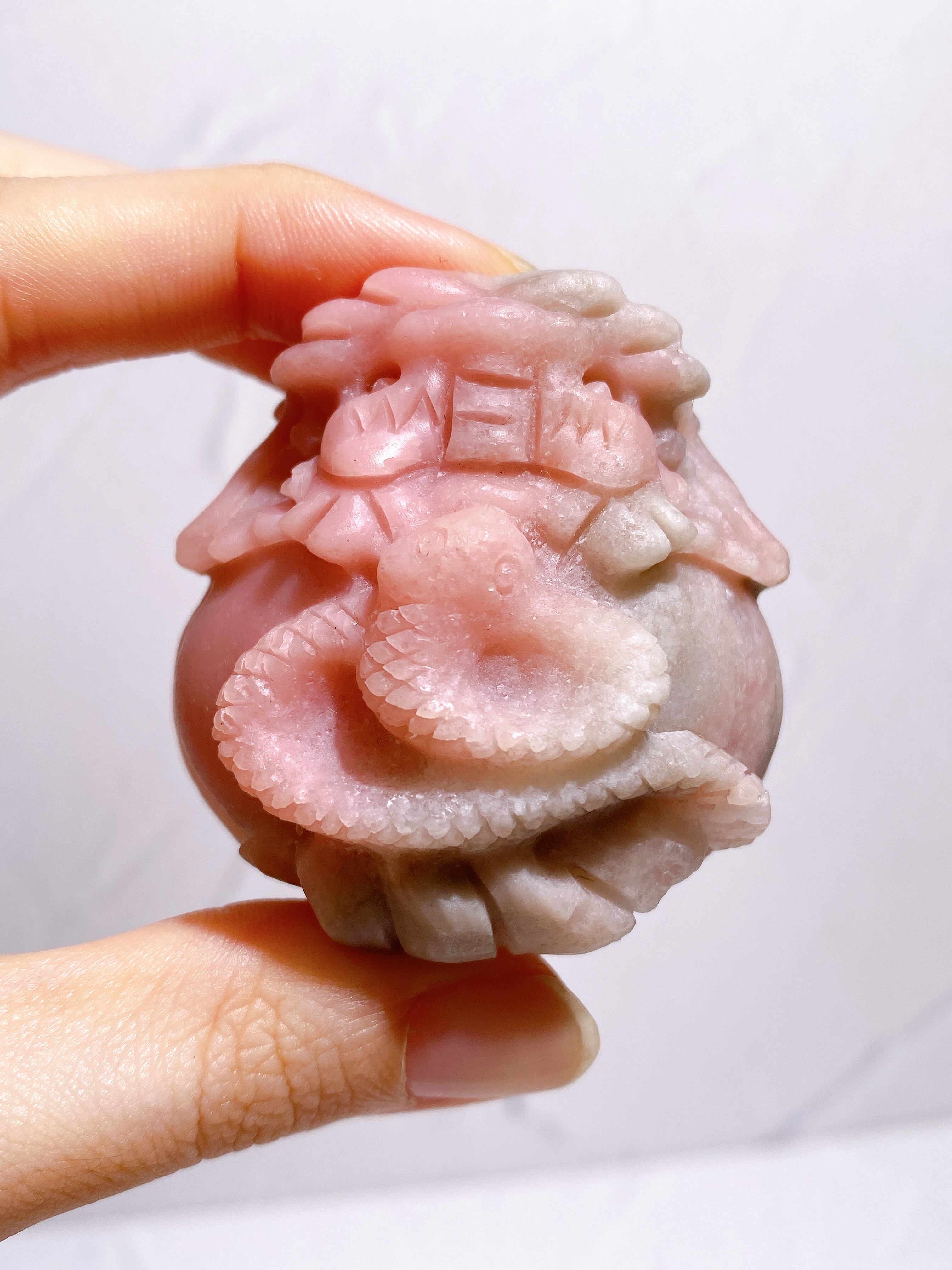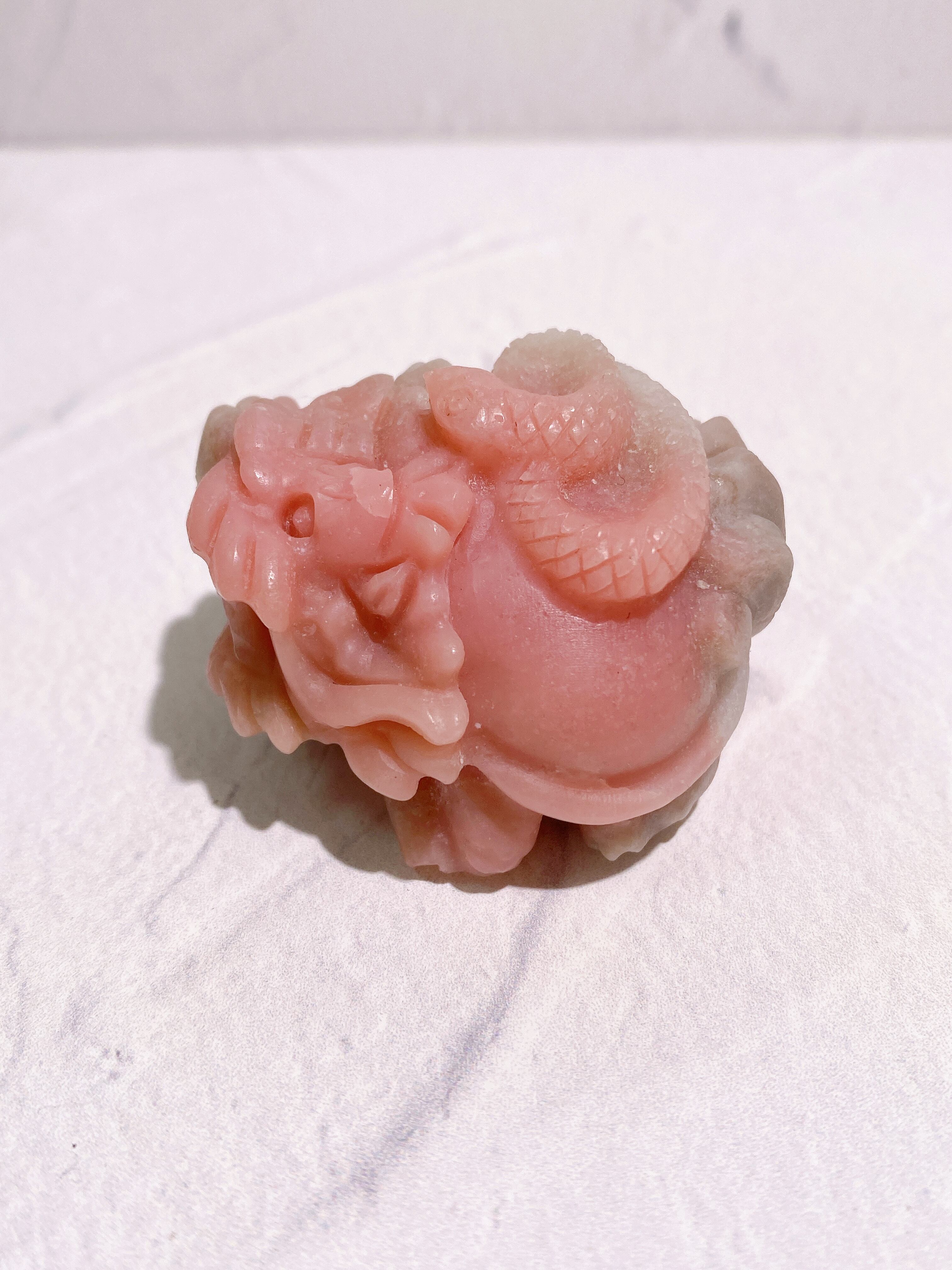 背中に立派な蛇さんを乗せた、とっても可愛くご利益のありそうなピンクオパールの龍亀ちゃん。