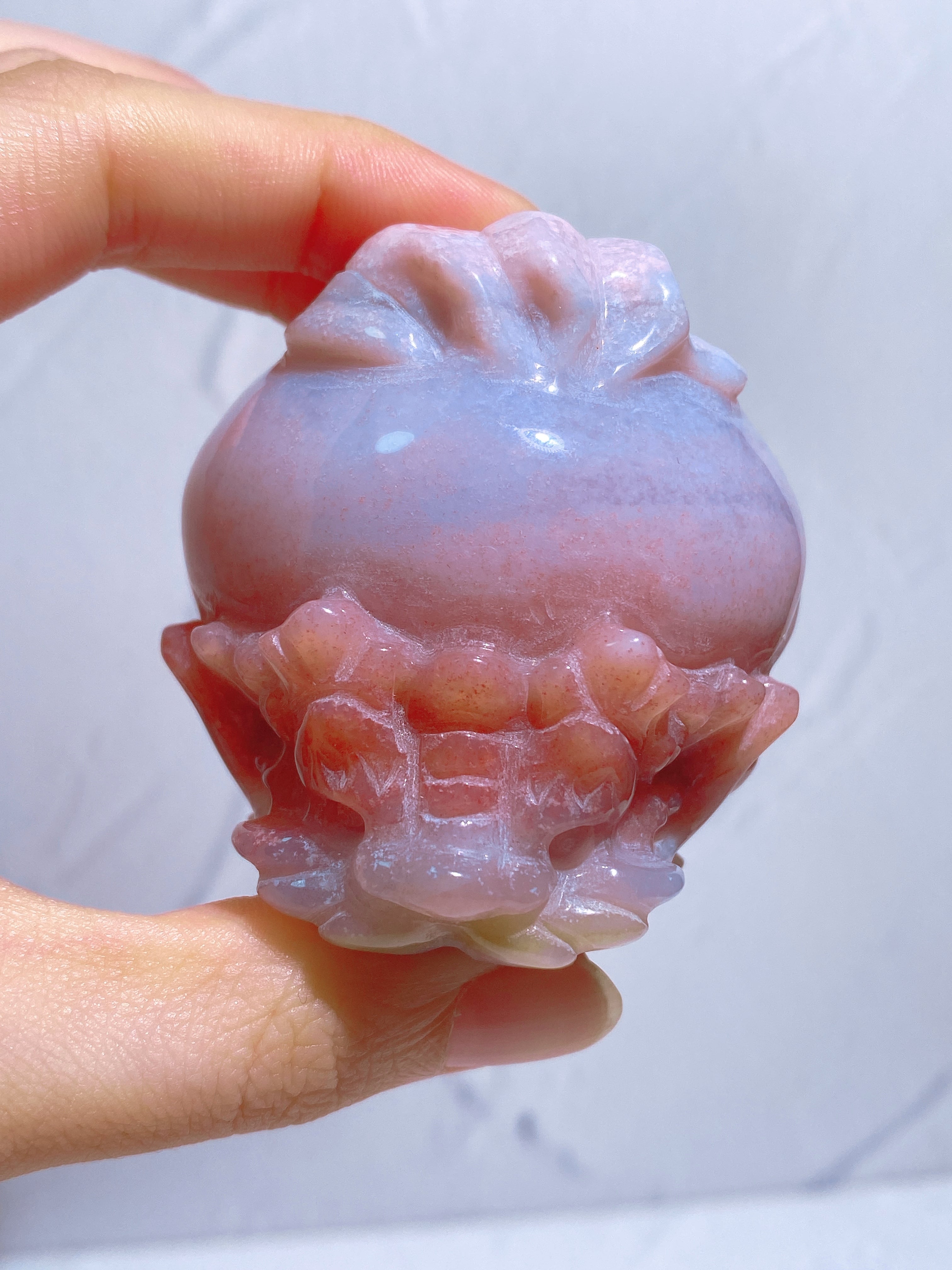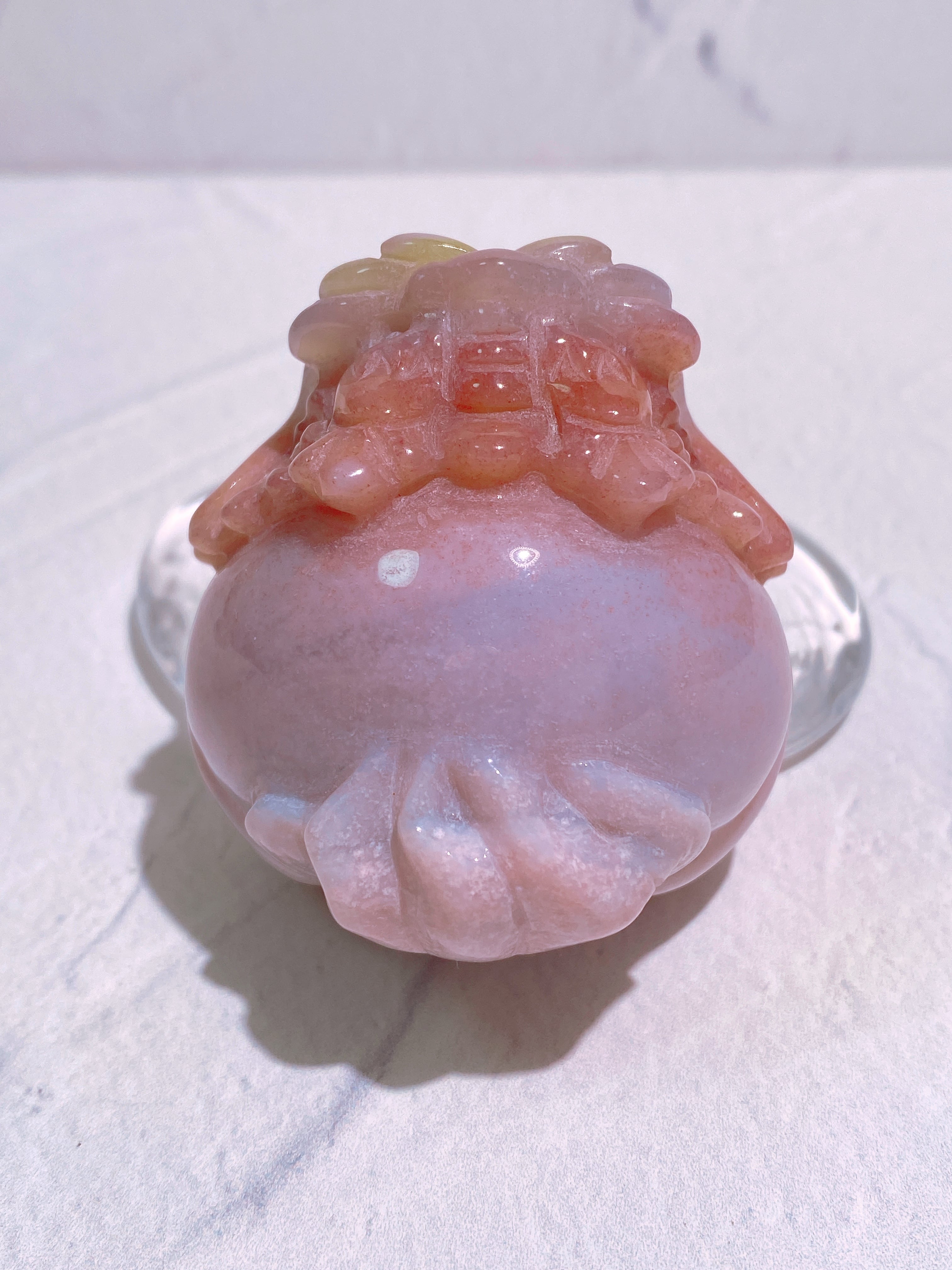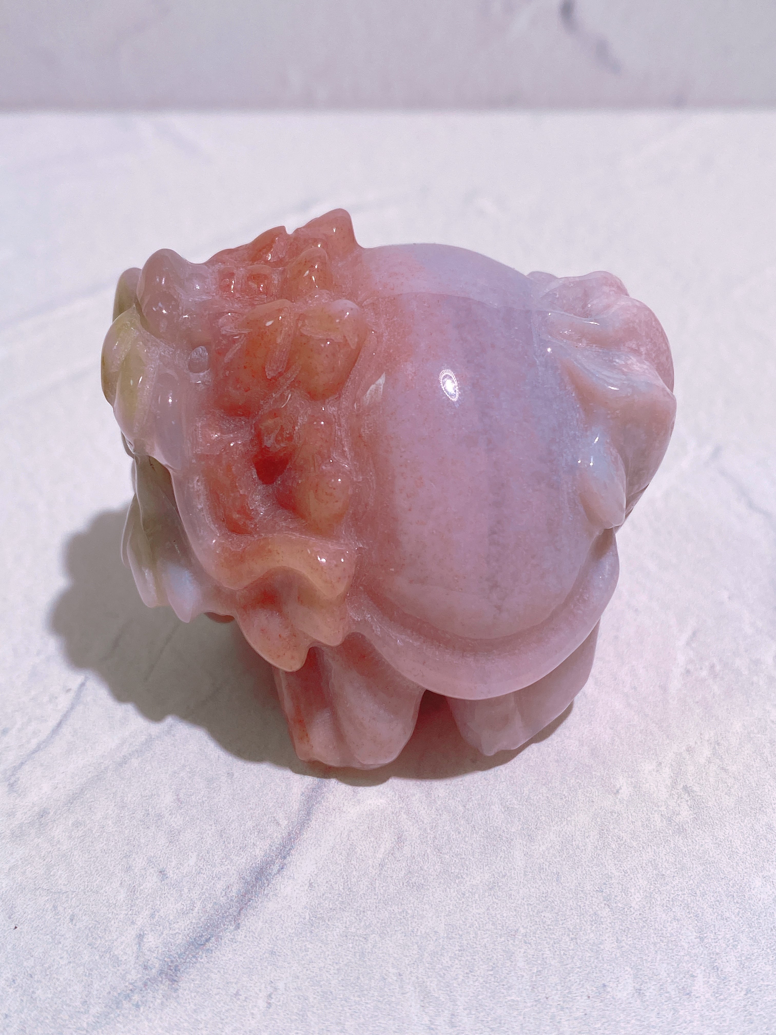 オーシャンジャスパーの中でも特に希少なピンクオーシャンジャスパーでカービングされた龍亀ちゃん。