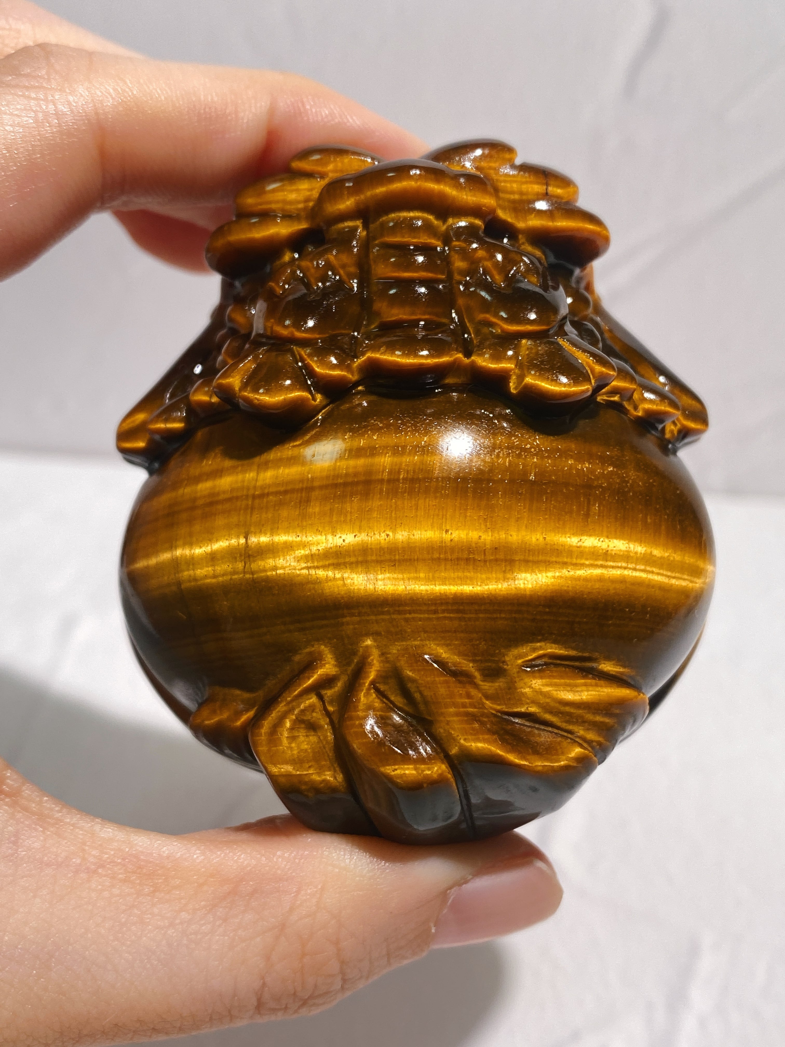 これまで仕入れてきたタイガーアイの中でも一際美しい、店主が惚れ込んだ最高品質のタイガーアイの龍亀ちゃんです。