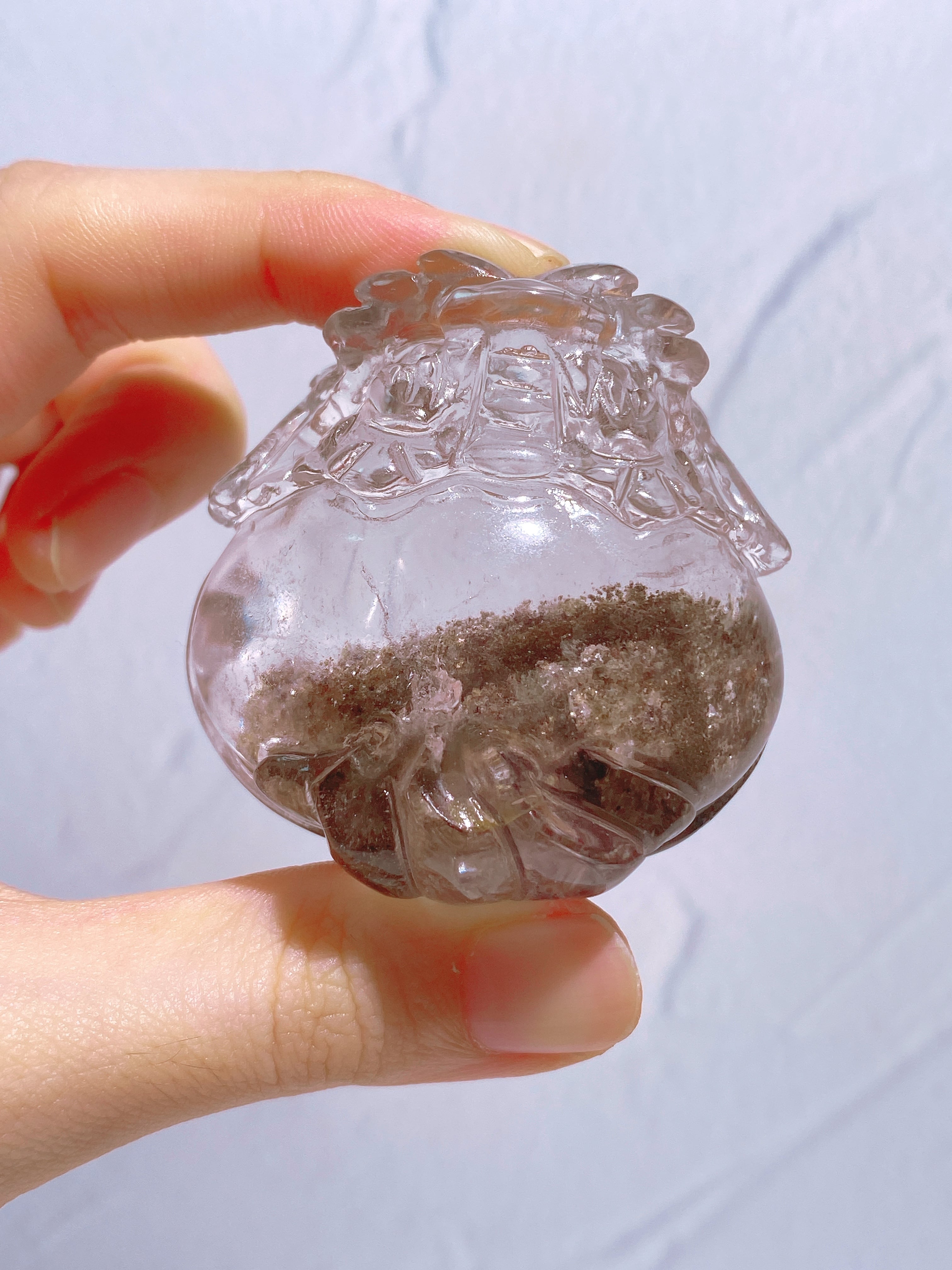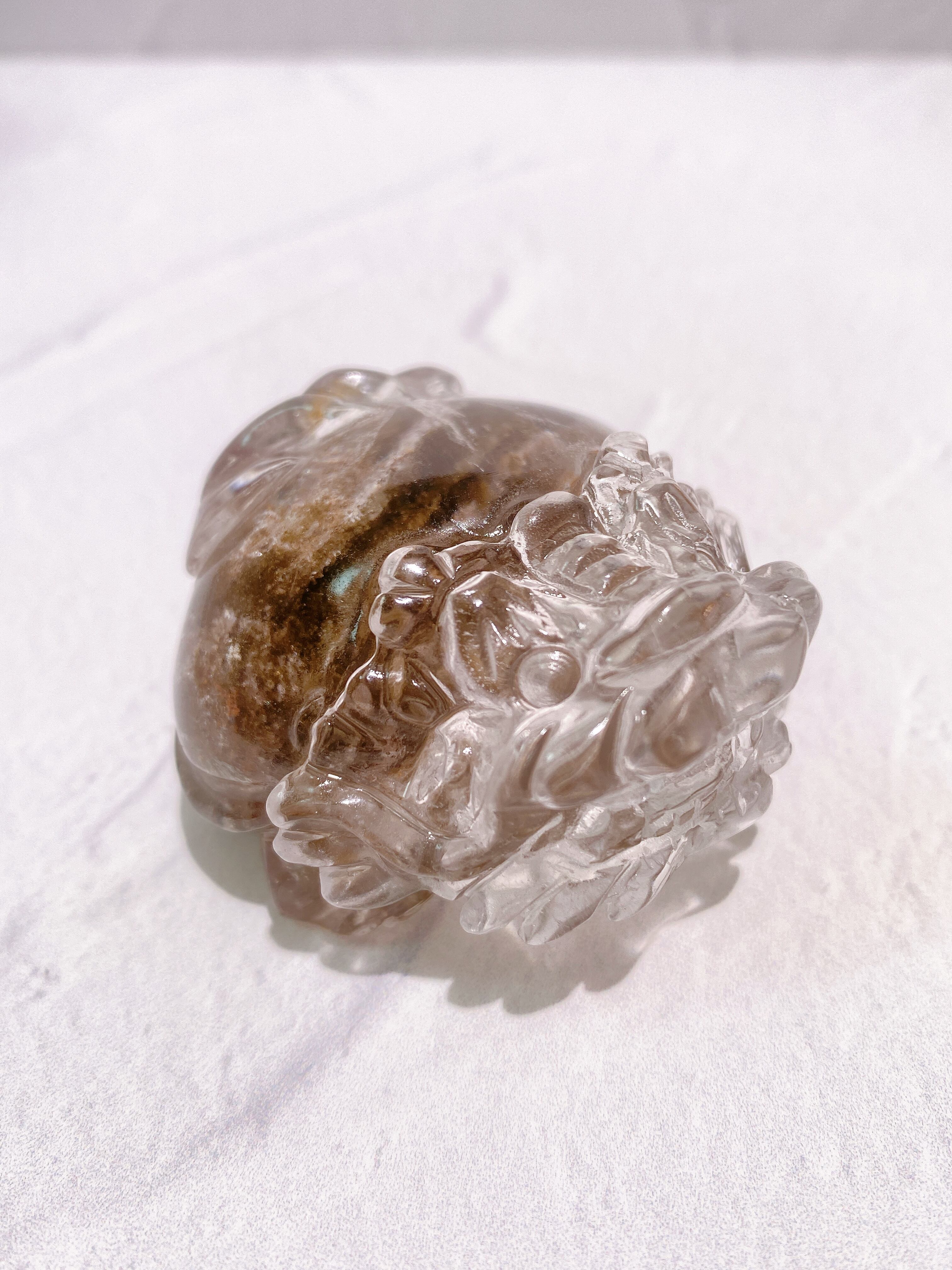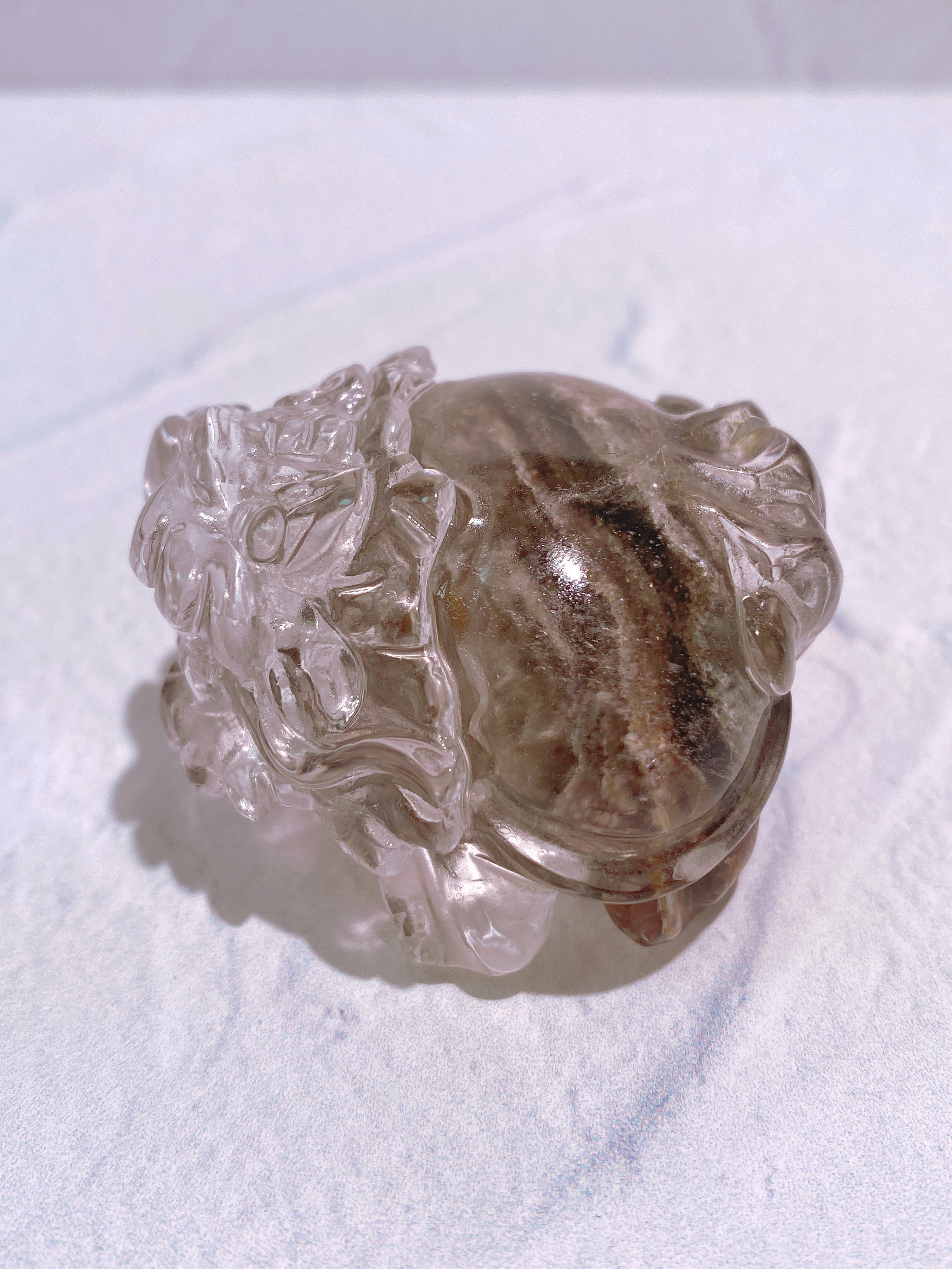 クォーツの透明感と、身体の下半分に層を成した内包物の美しさ。