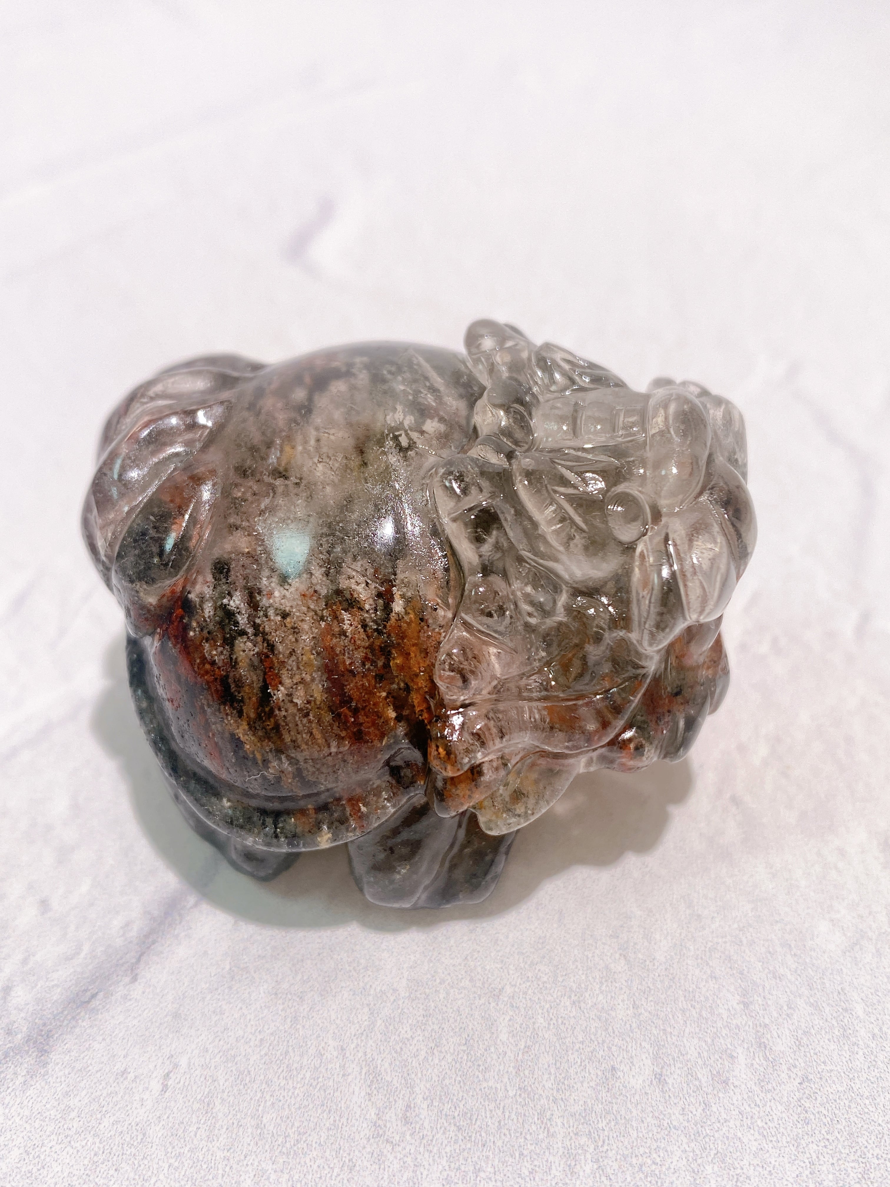 色とりどりの内包物が隙間なくぎっしりと、そして緻密に層を成した芸術的な龍亀ちゃん。