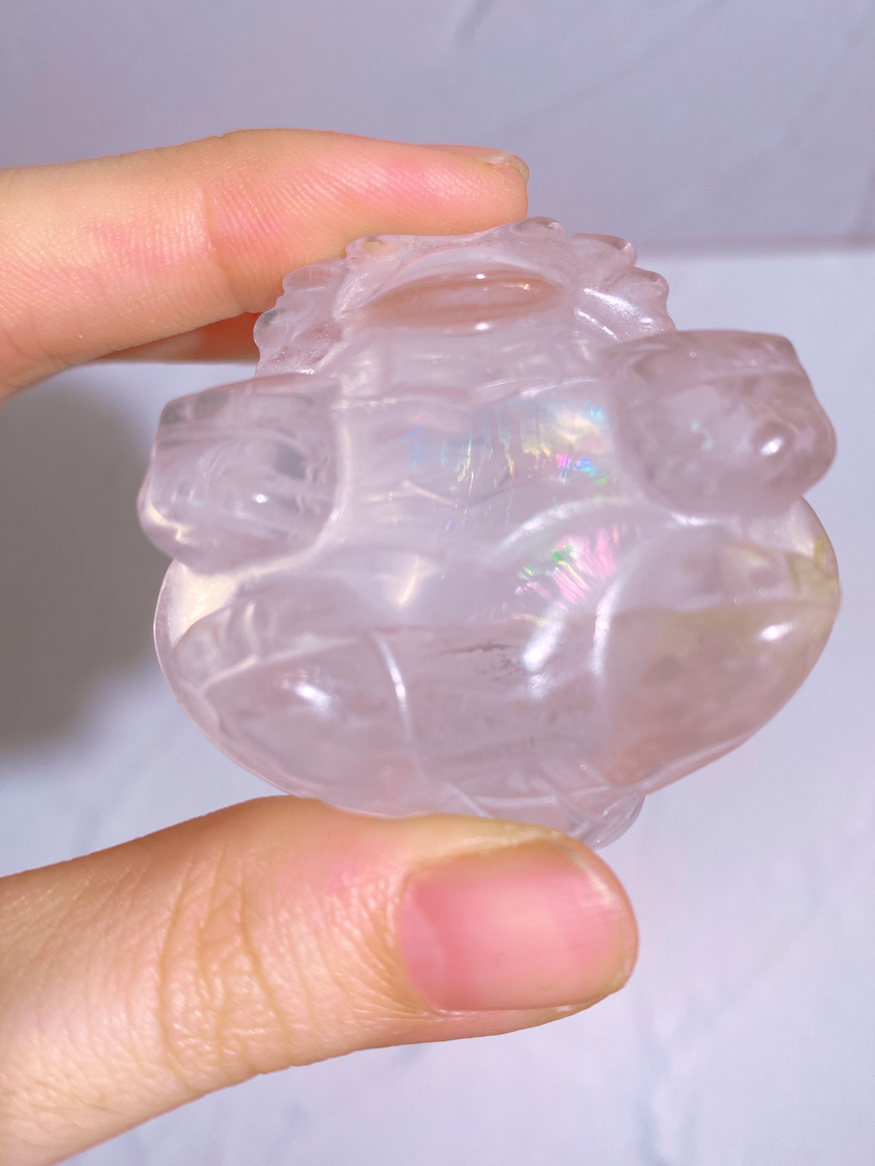 まるで虹のミストが降り注いでいるかのように、ふわ〜っと柔らかい虹が広がるとても高品質なクリアクォーツの龍亀ちゃんです。