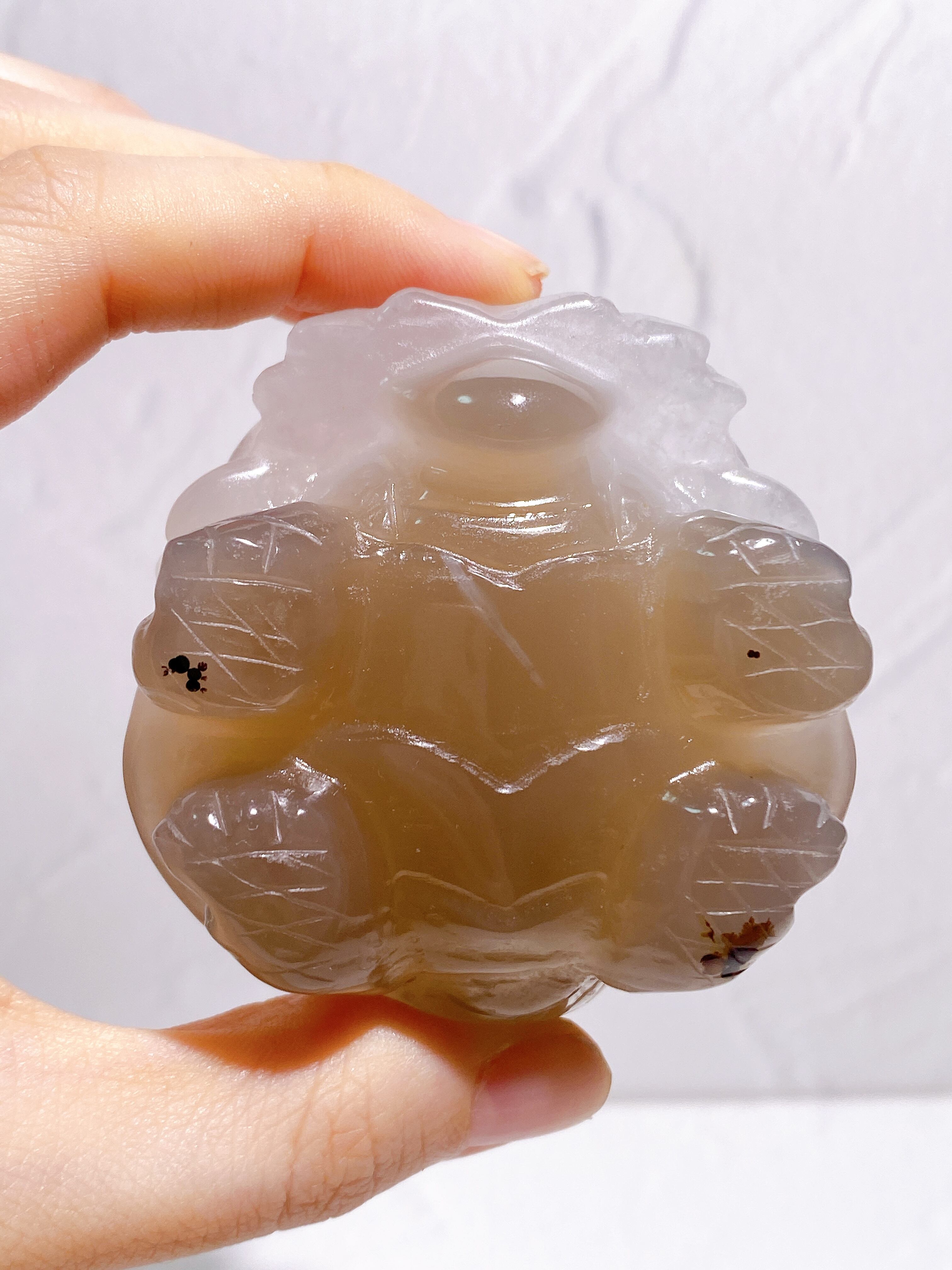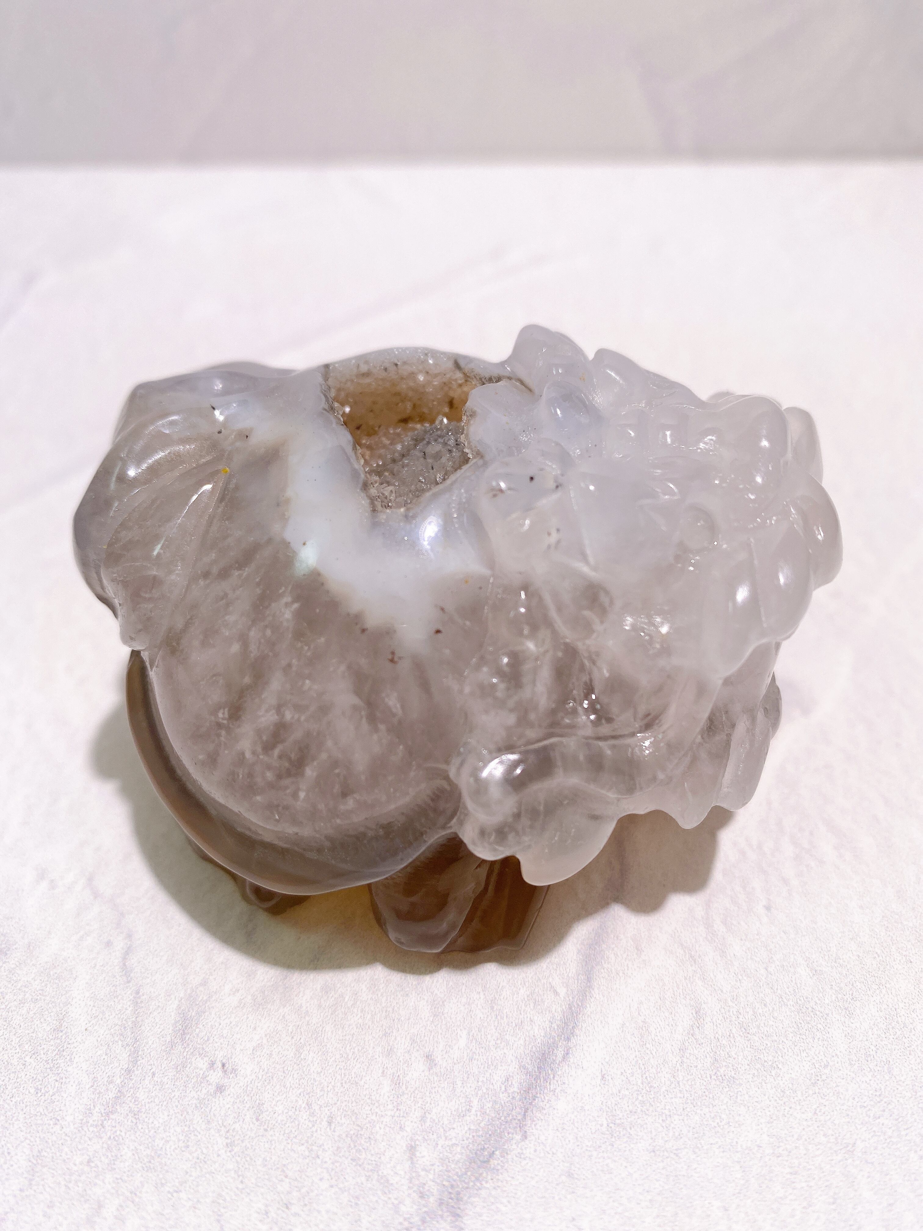 こちらのドゥルージーアゲート龍亀ちゃんは、晶洞の周りにモコモコと波打ったような縁取りがある、とっても可愛い子です^^