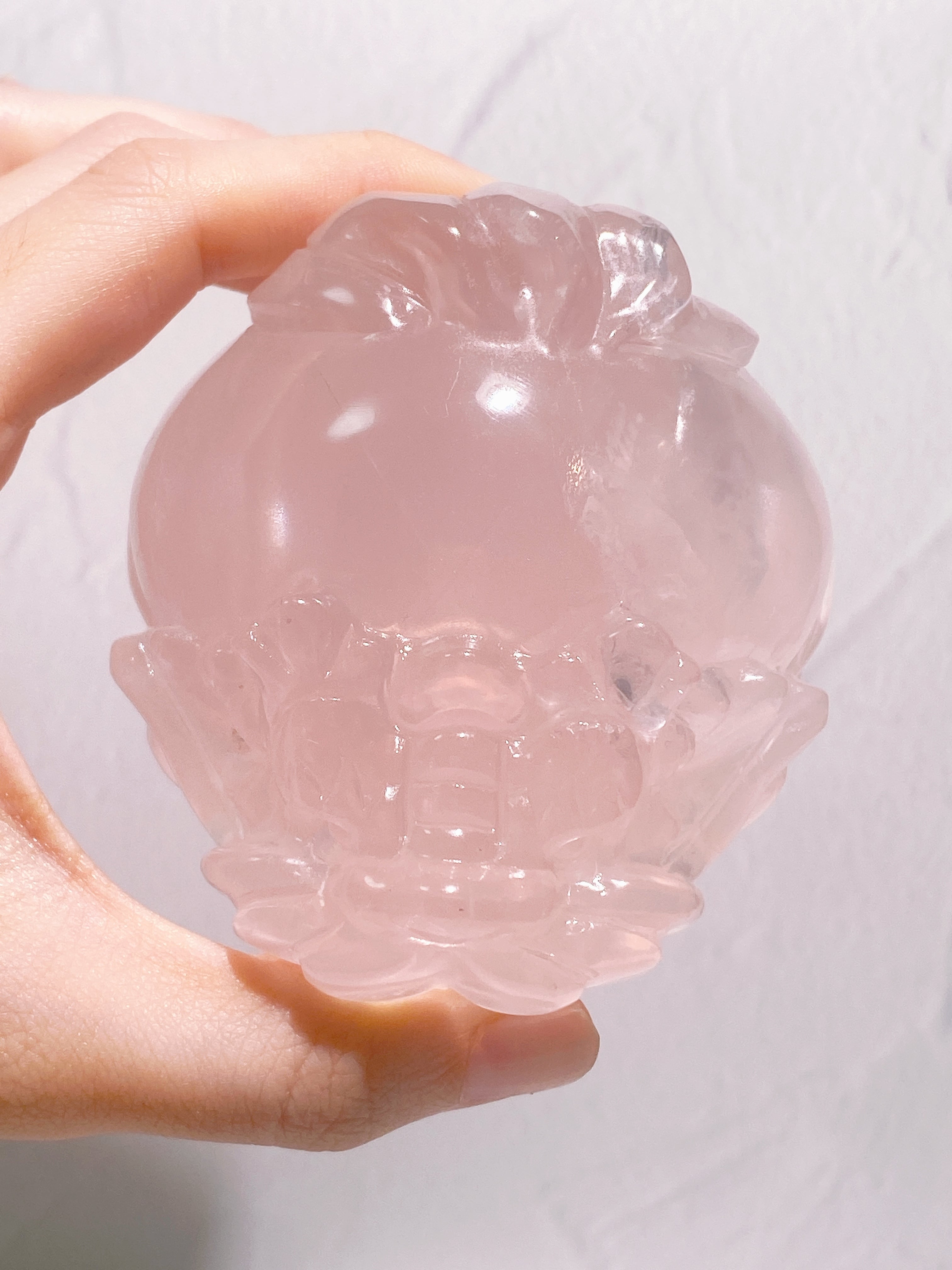 ※ご売約済【premium★特注品】最高品質ローズクォーツ龍亀 7.5cm