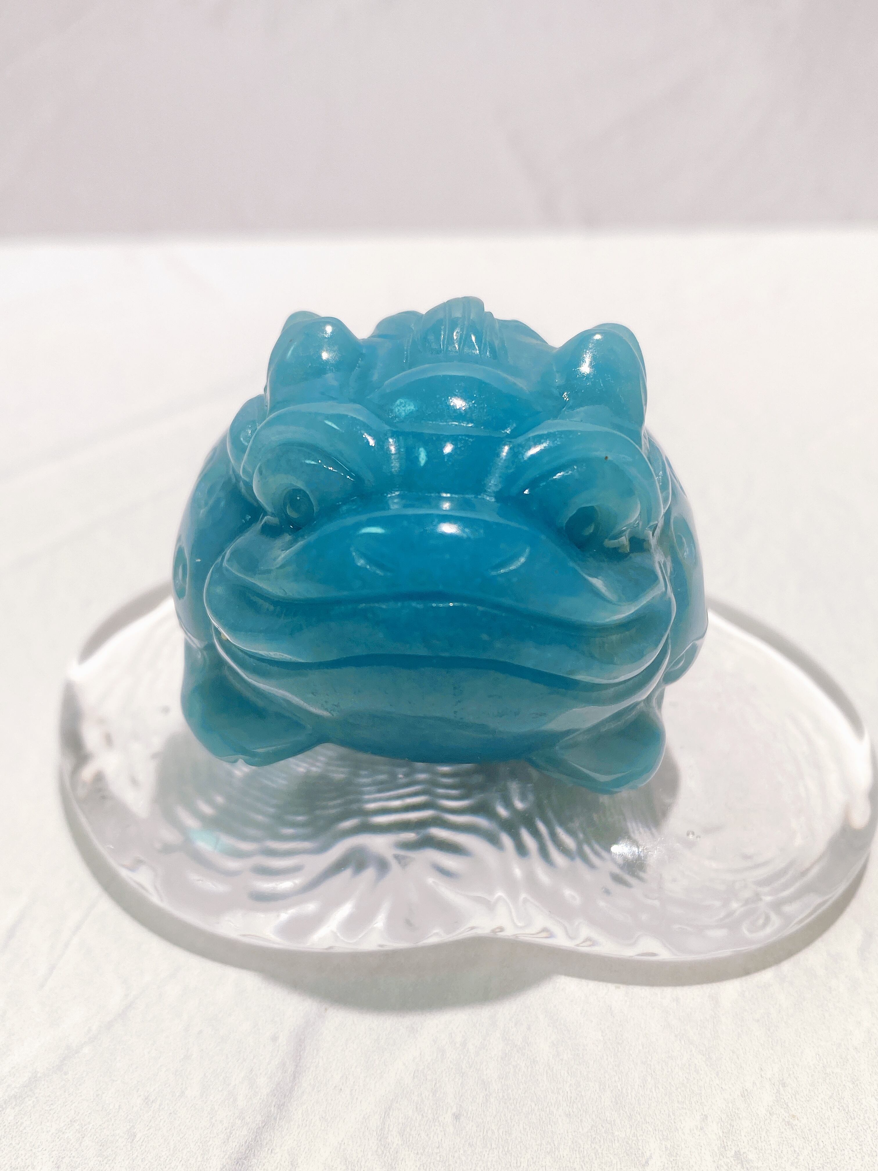 この子はとても可愛らしい空色のトロレアイトで彫刻された金蟾ちゃんです。