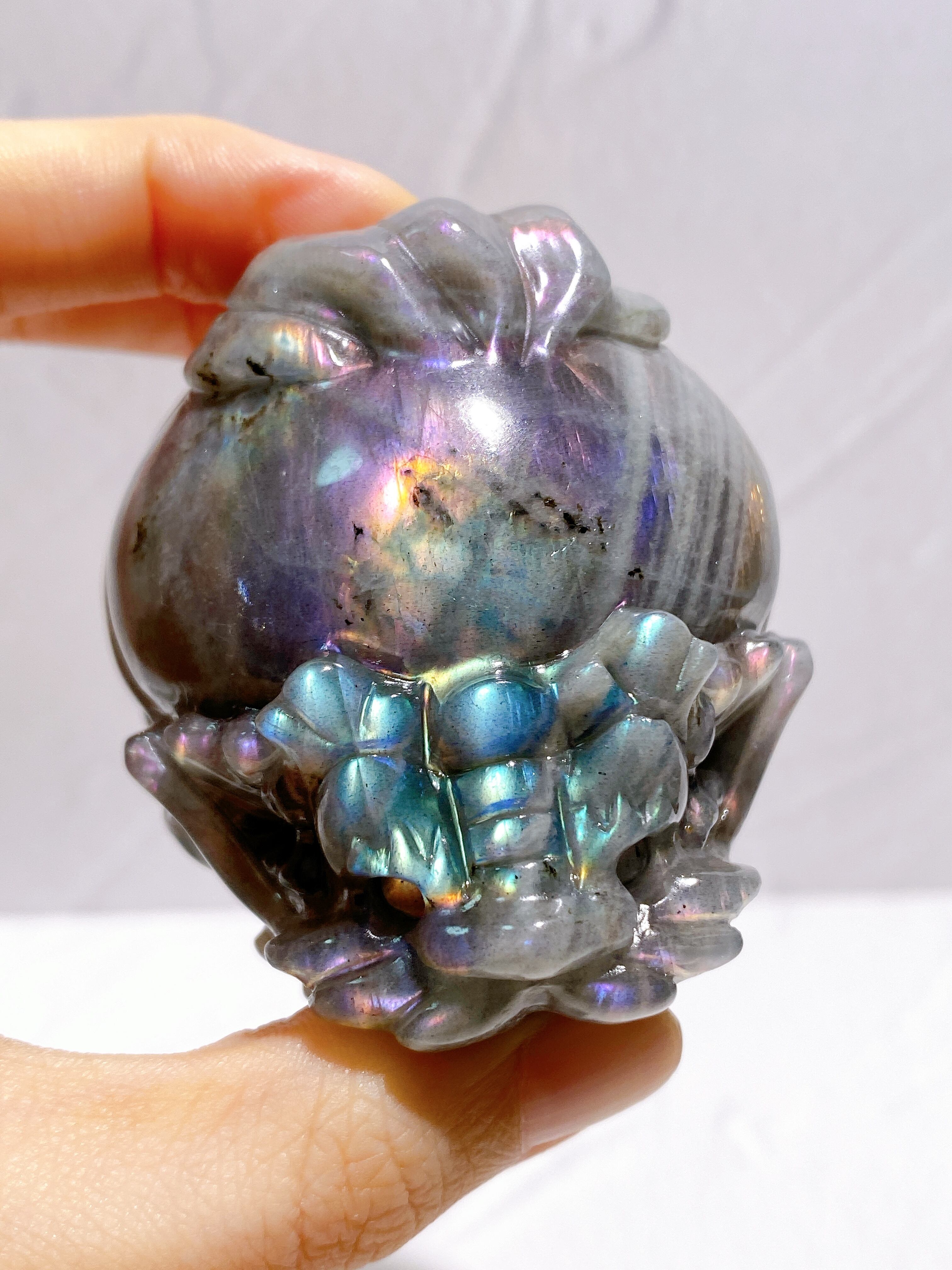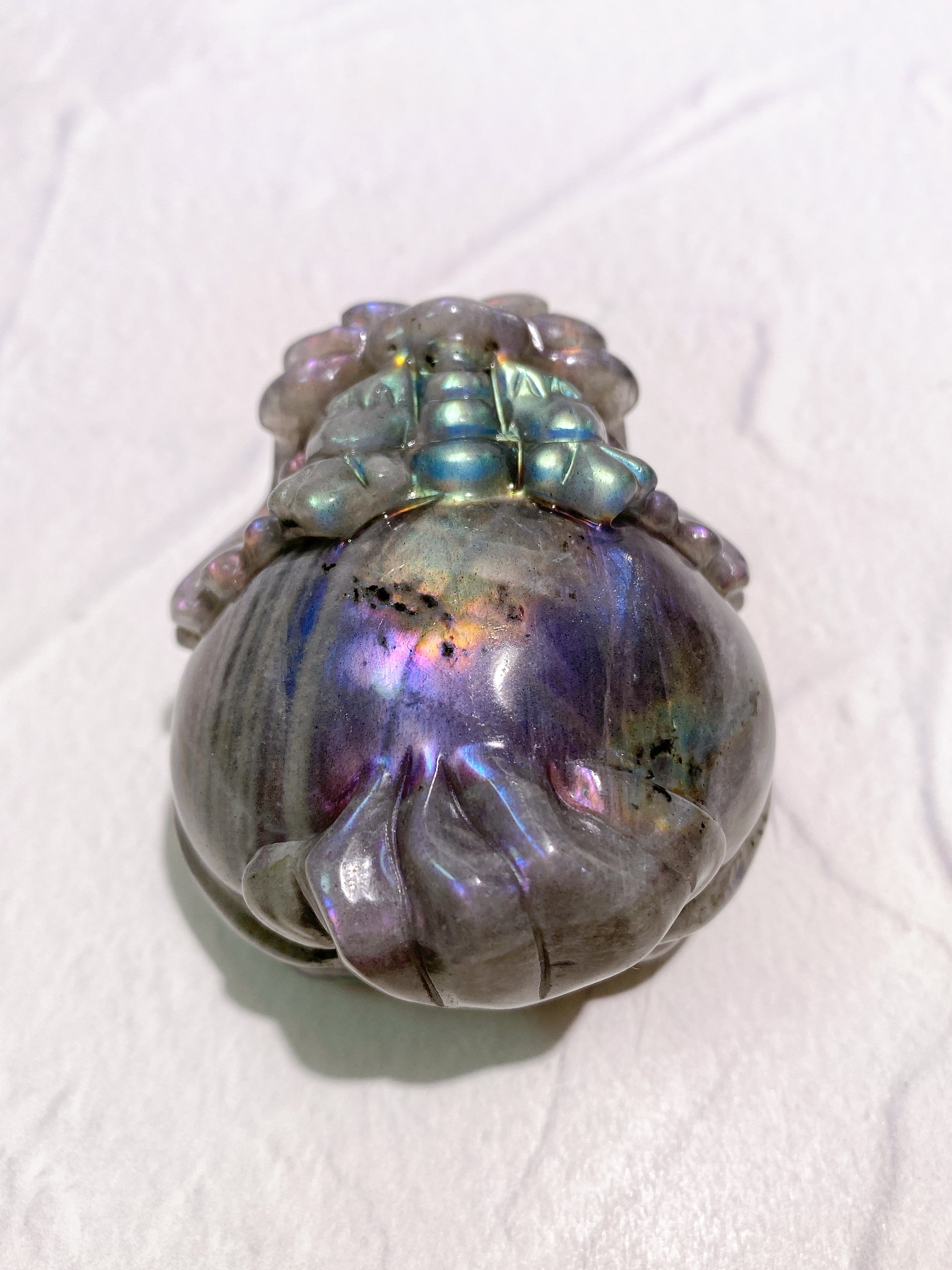 思わず息を呑むほどまばゆい煌めきを放つラブラドライトの龍亀ちゃん。