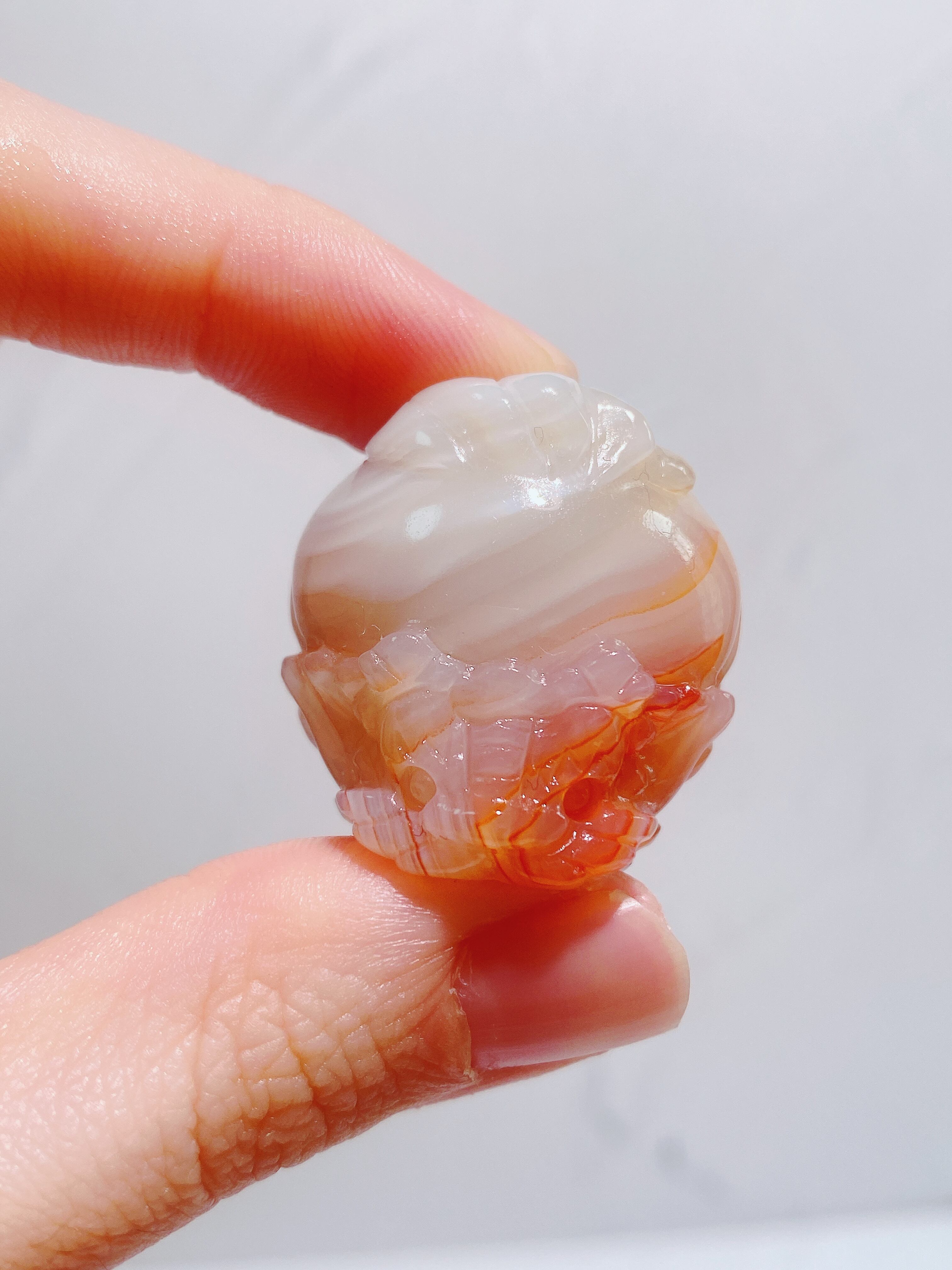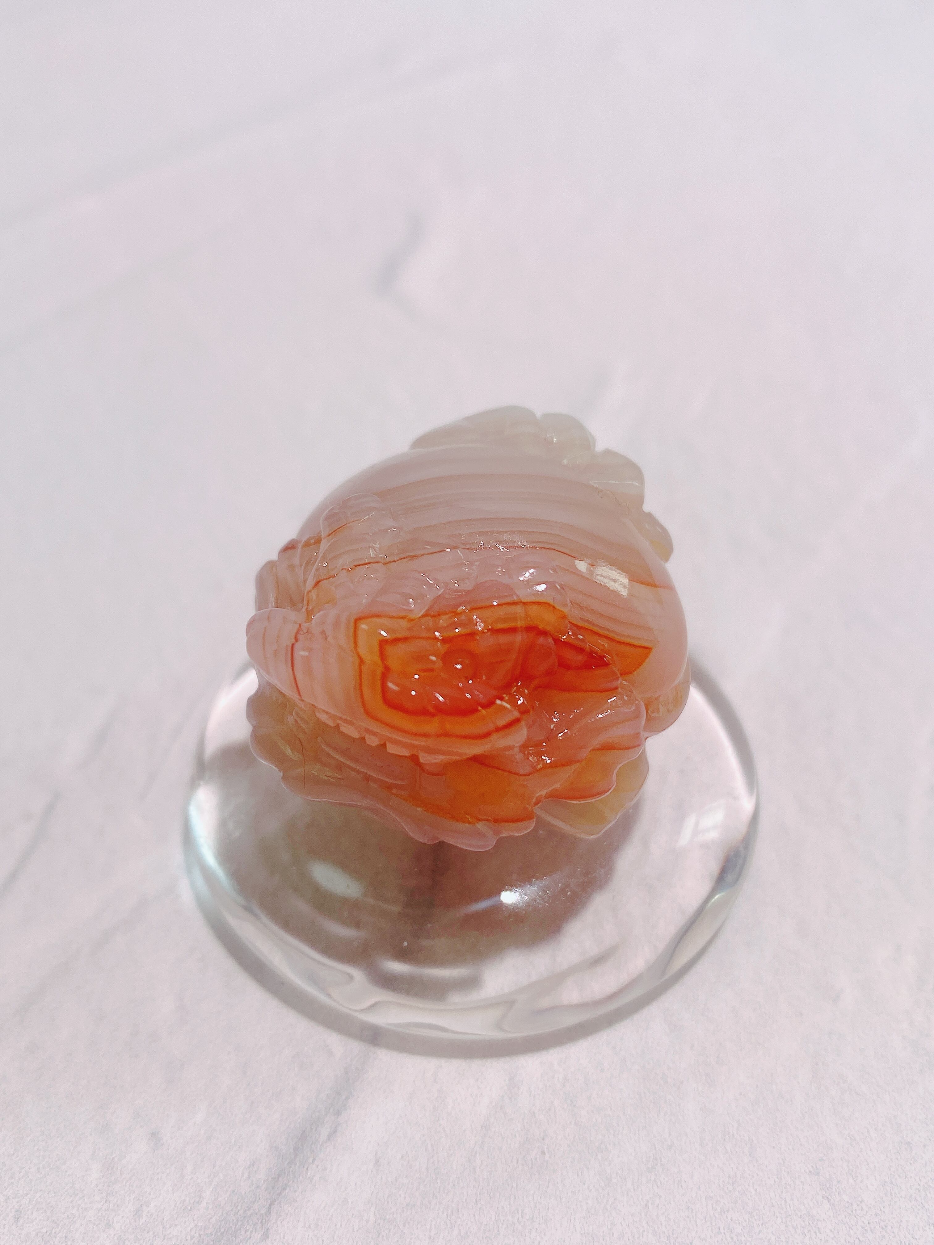 鮮やかな赤橙色と白の指紋のような縞模様が特徴的なサードニクス。