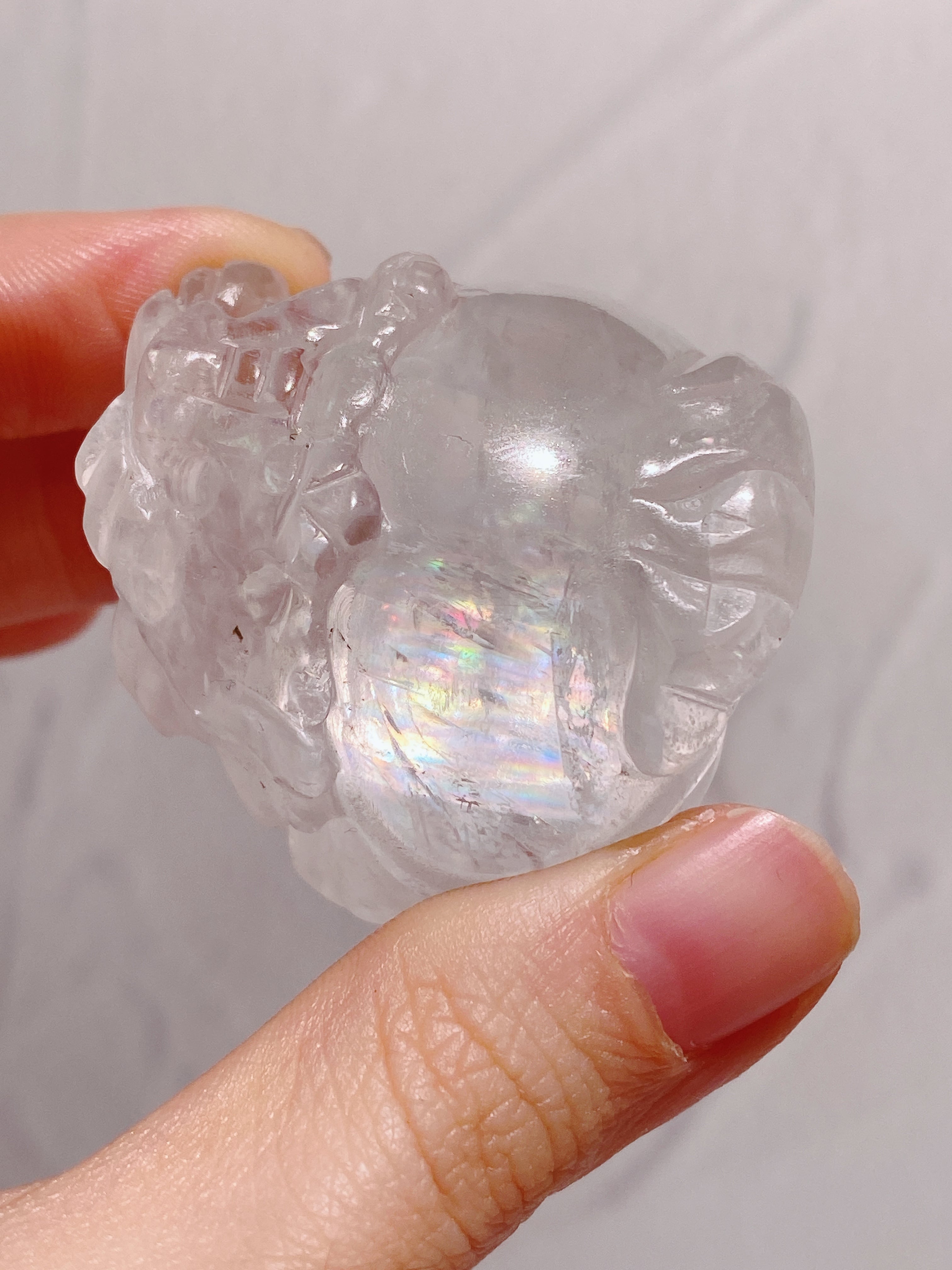 オプティカルカルサイトは劈開性(鉱物や結晶が特定の方向に割れやすい性質)を持つため、カービングが極めて難しい天然石の1つです。