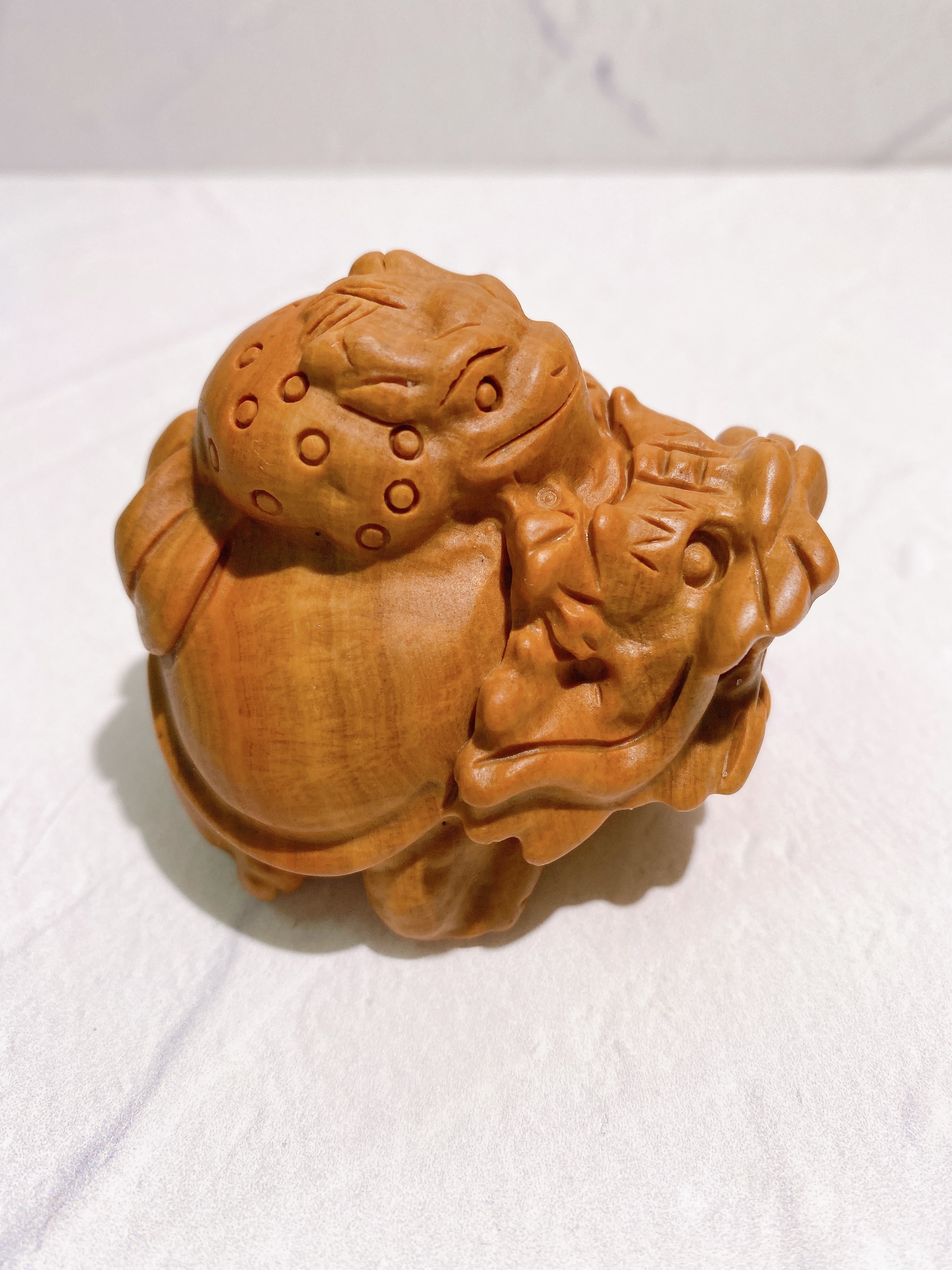 【財運アップ★瑞獣コンビ②】木紋石龍亀(銭蛙乗せ)