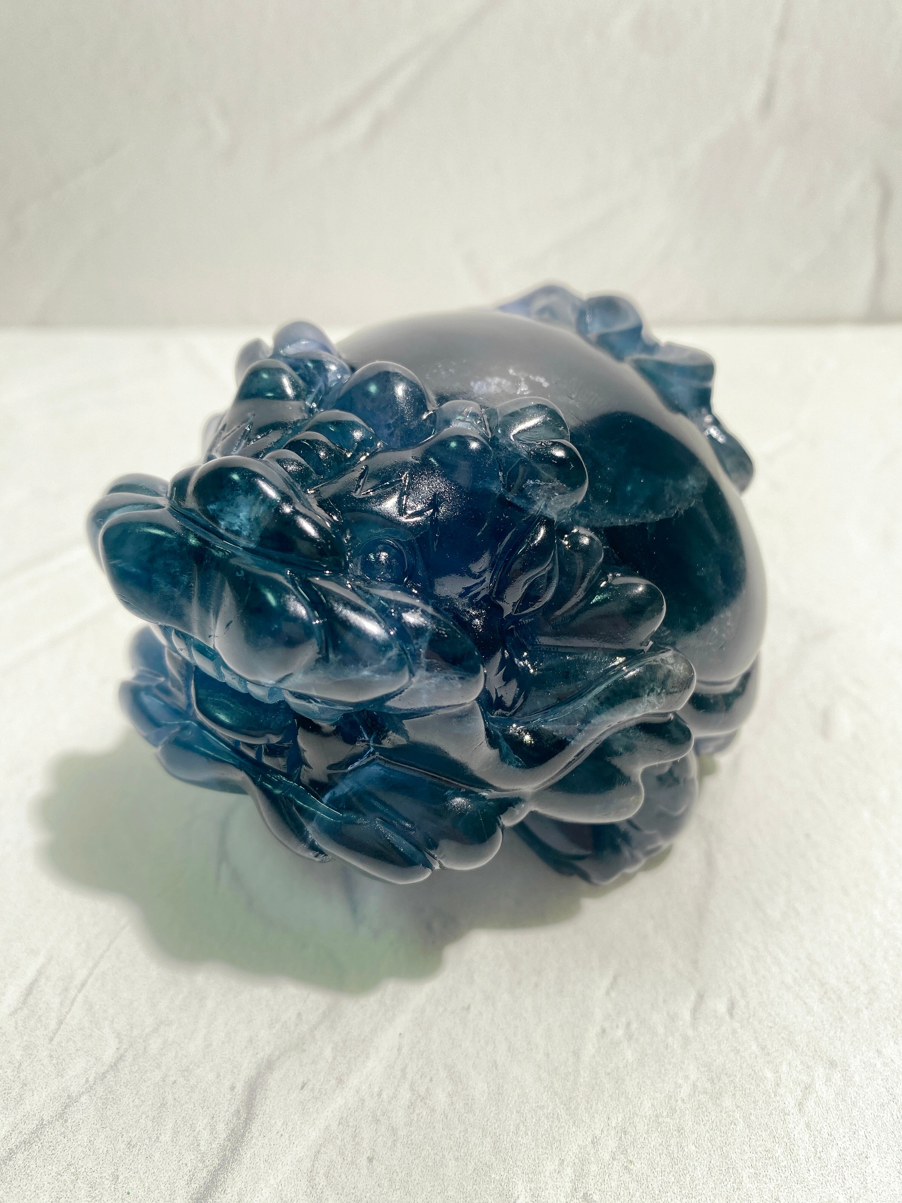 その貴重なブルーフローライトの特大原石を彫刻して作られたとっても大きな龍亀ちゃん!