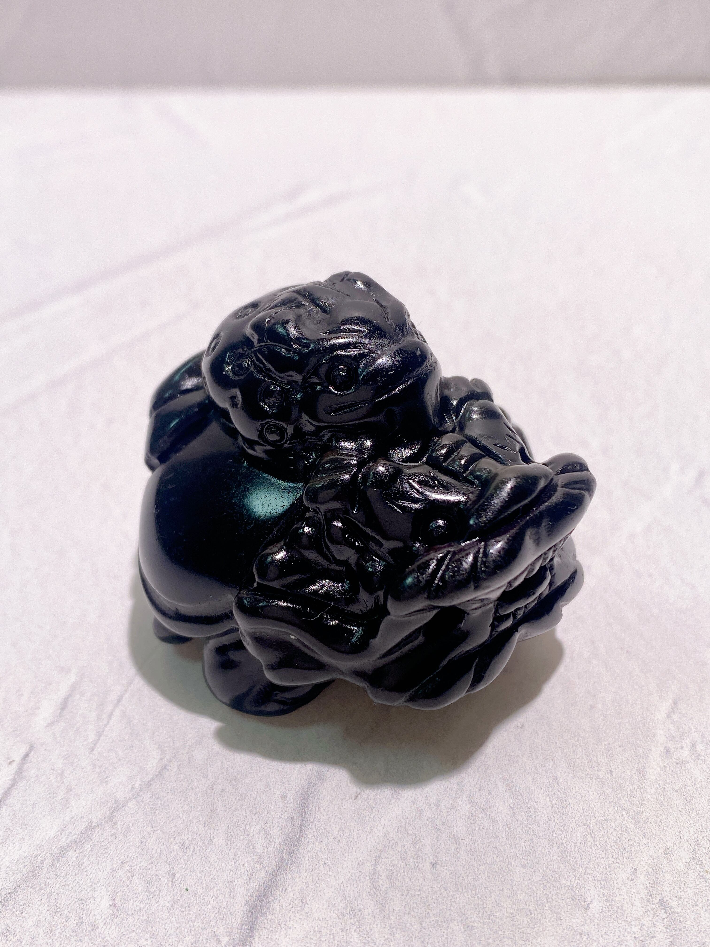 【財運アップ★瑞獣コンビ⑤】レインボーオブシディアン龍亀(銭蛙乗せ) 5cm