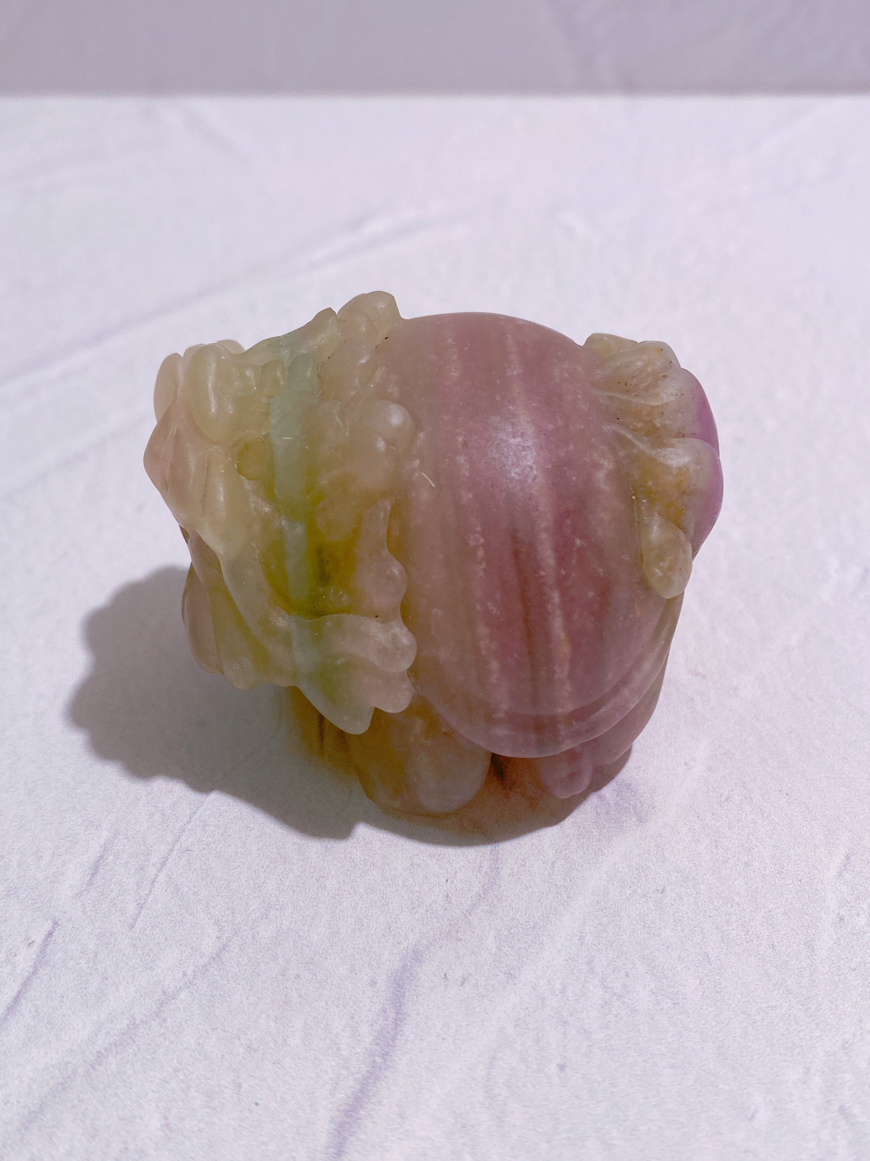 パキッとしたお色味の透明感あるフローライトも素敵ですが、ふんわり柔らかな風合いのこの龍亀ちゃんは、側に置いておくだけで心に平穏をもたらしてくれます。