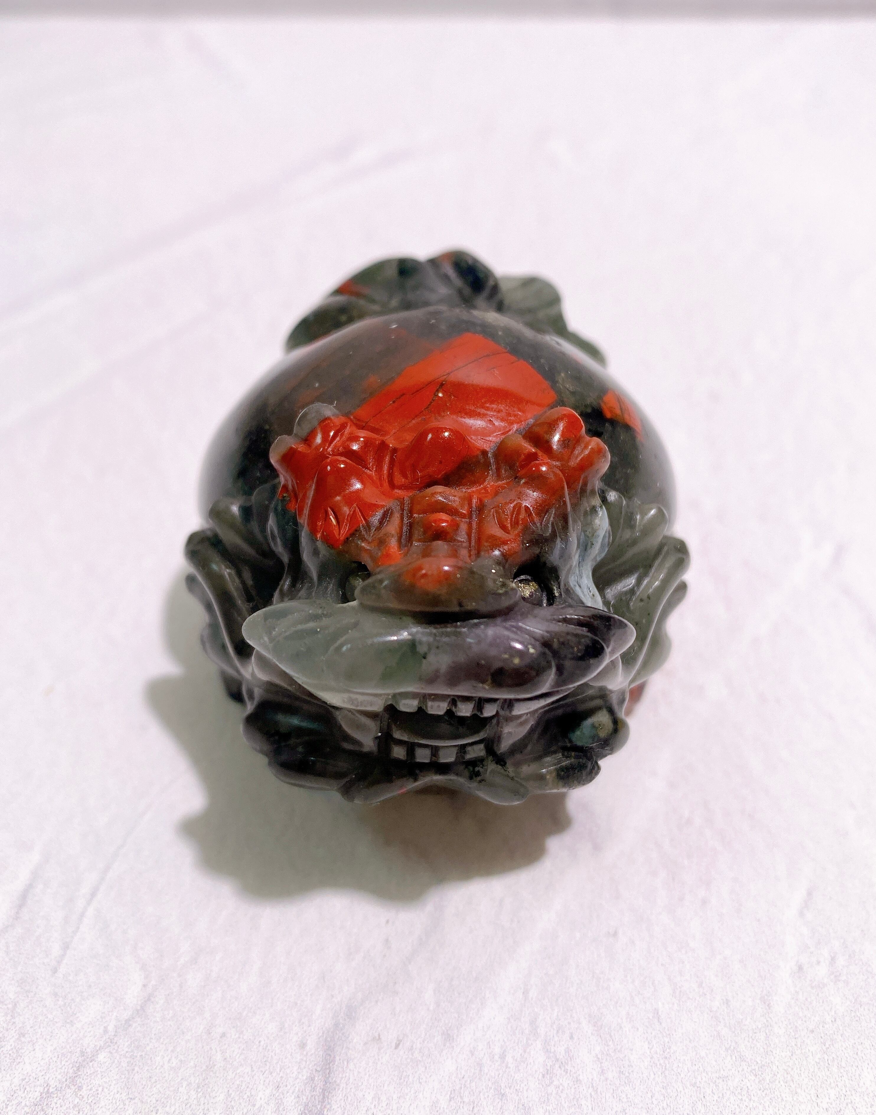 燃えるような赤と深緑のコントラストが美しいブラッドストーンの龍亀ちゃんが入荷しました!