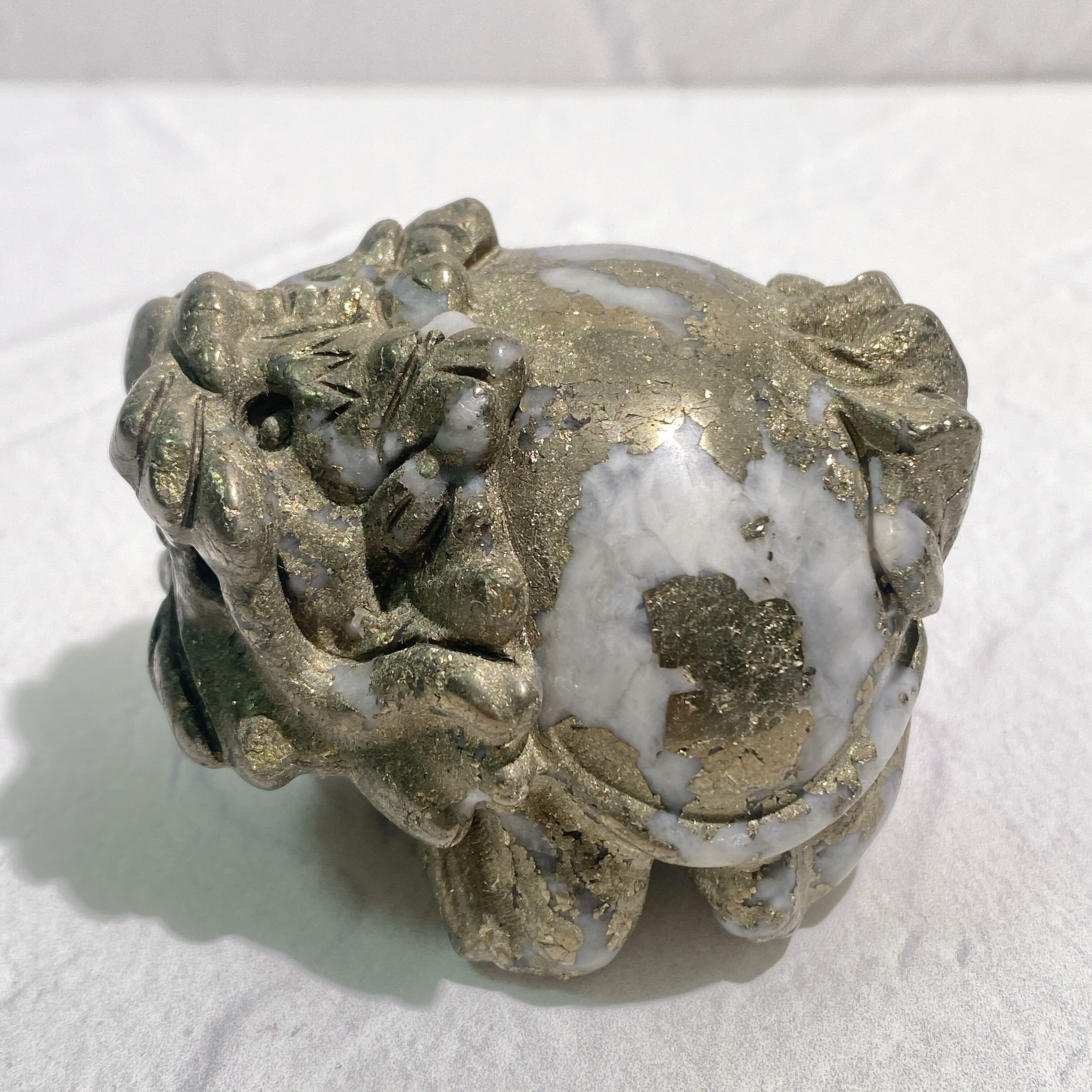 【黄金の地図】パイライト×カルサイト共生龍亀 6cm