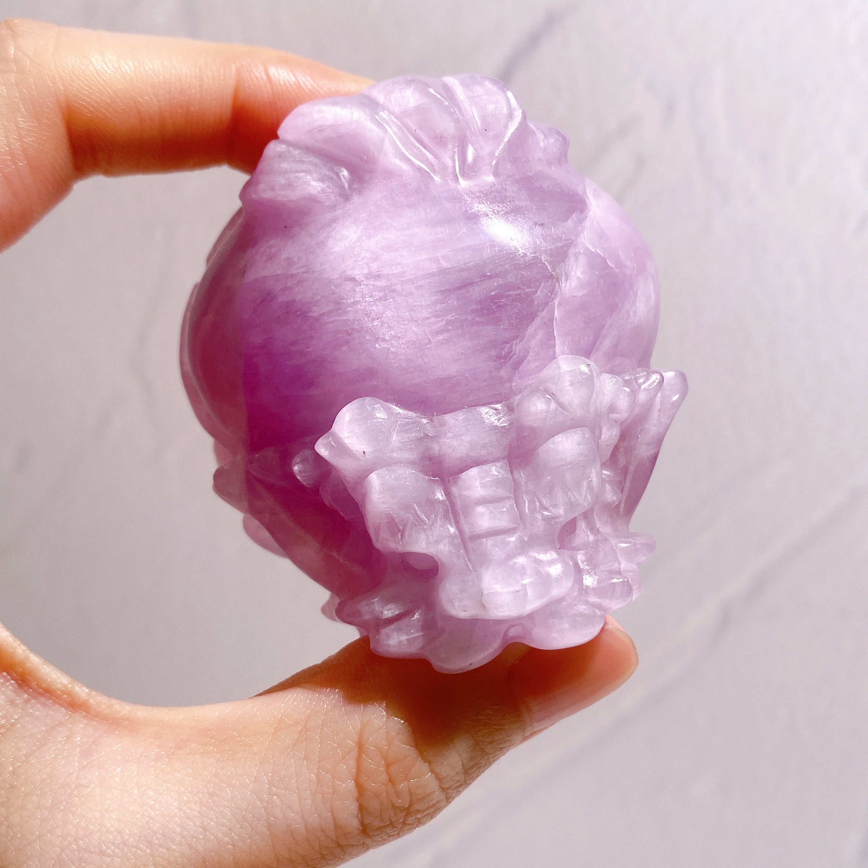 これほど高品質なクンツァイトのカービングはなかなか手に入りません。