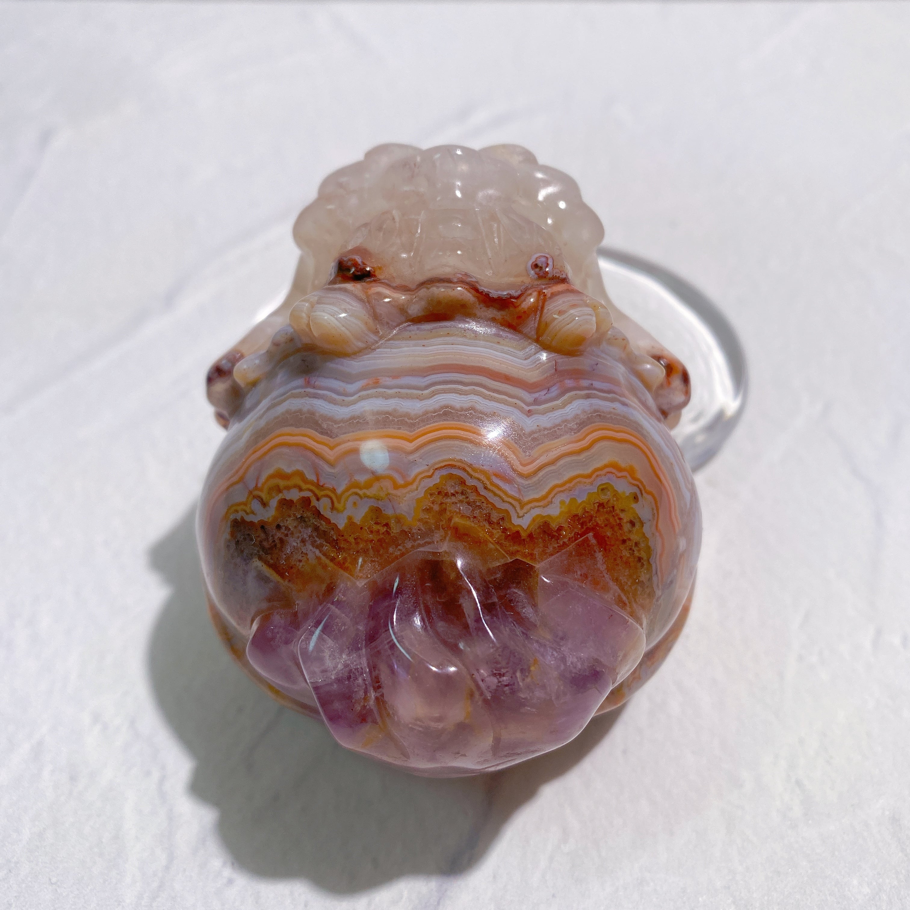 【美ストライプ】アメジストアゲート龍亀 7cm