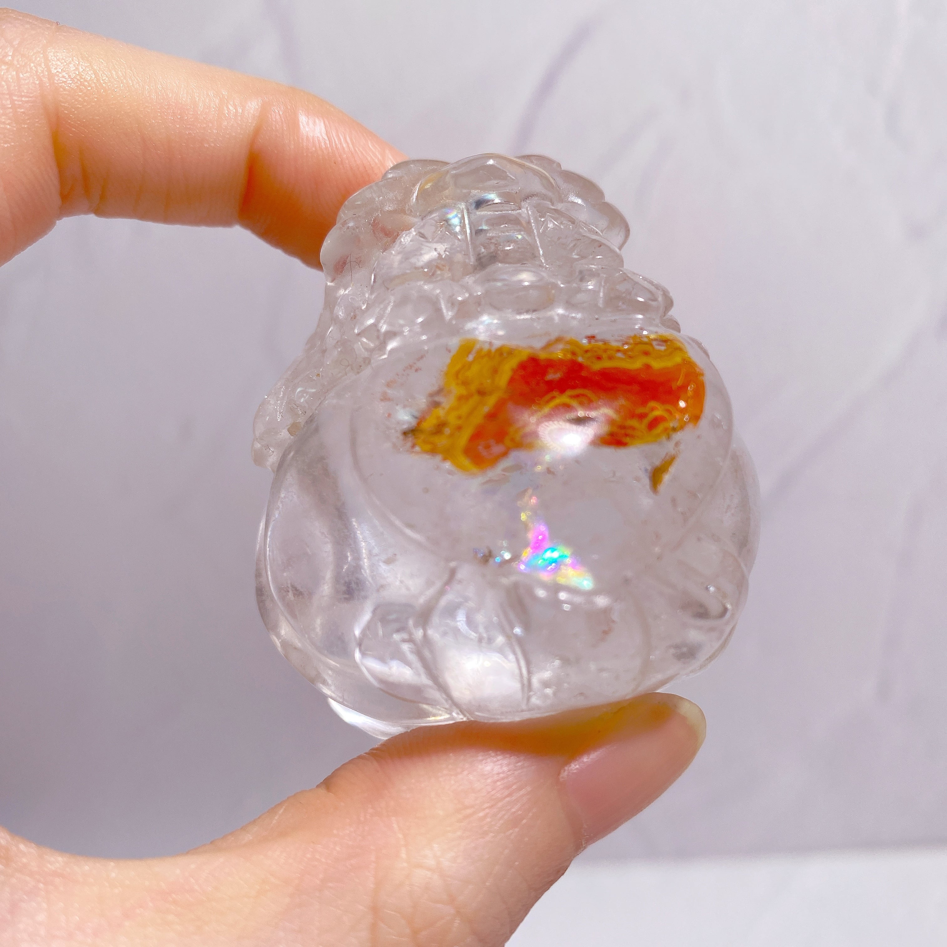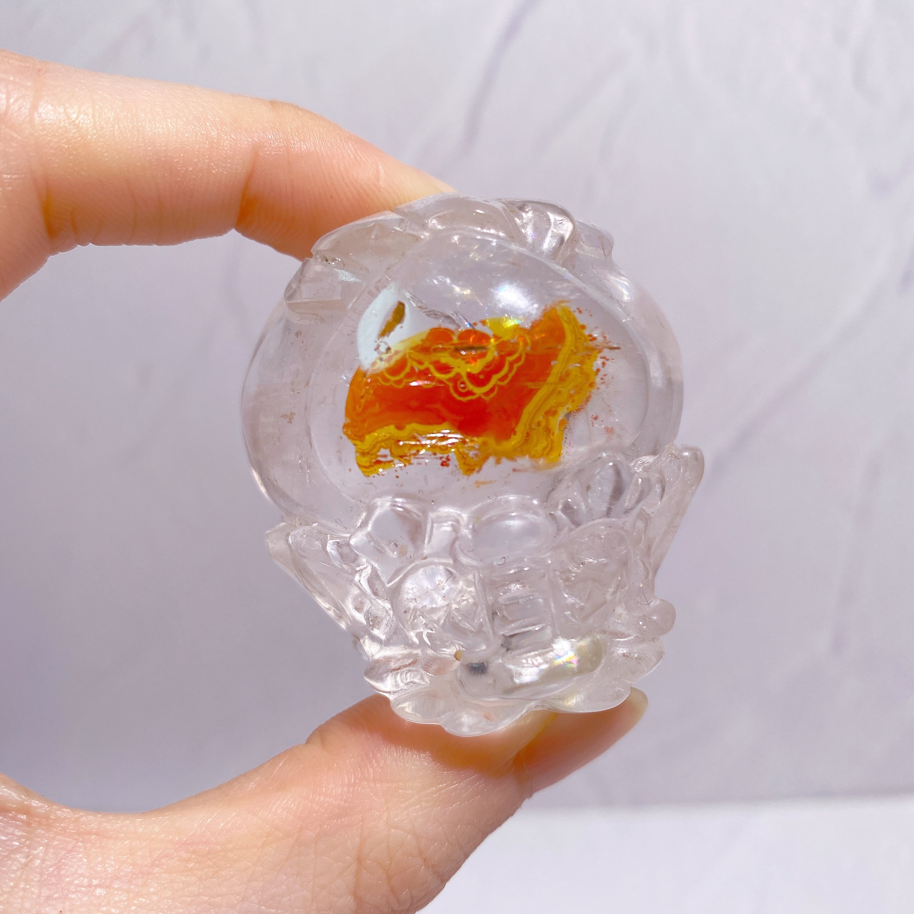 透明度の高いクォーツに燃えるような赤と鮮やかな黄色がよく映え、まさに水中を優雅に泳ぐ錦鯉を彷彿とさせるような煌びやかさ。