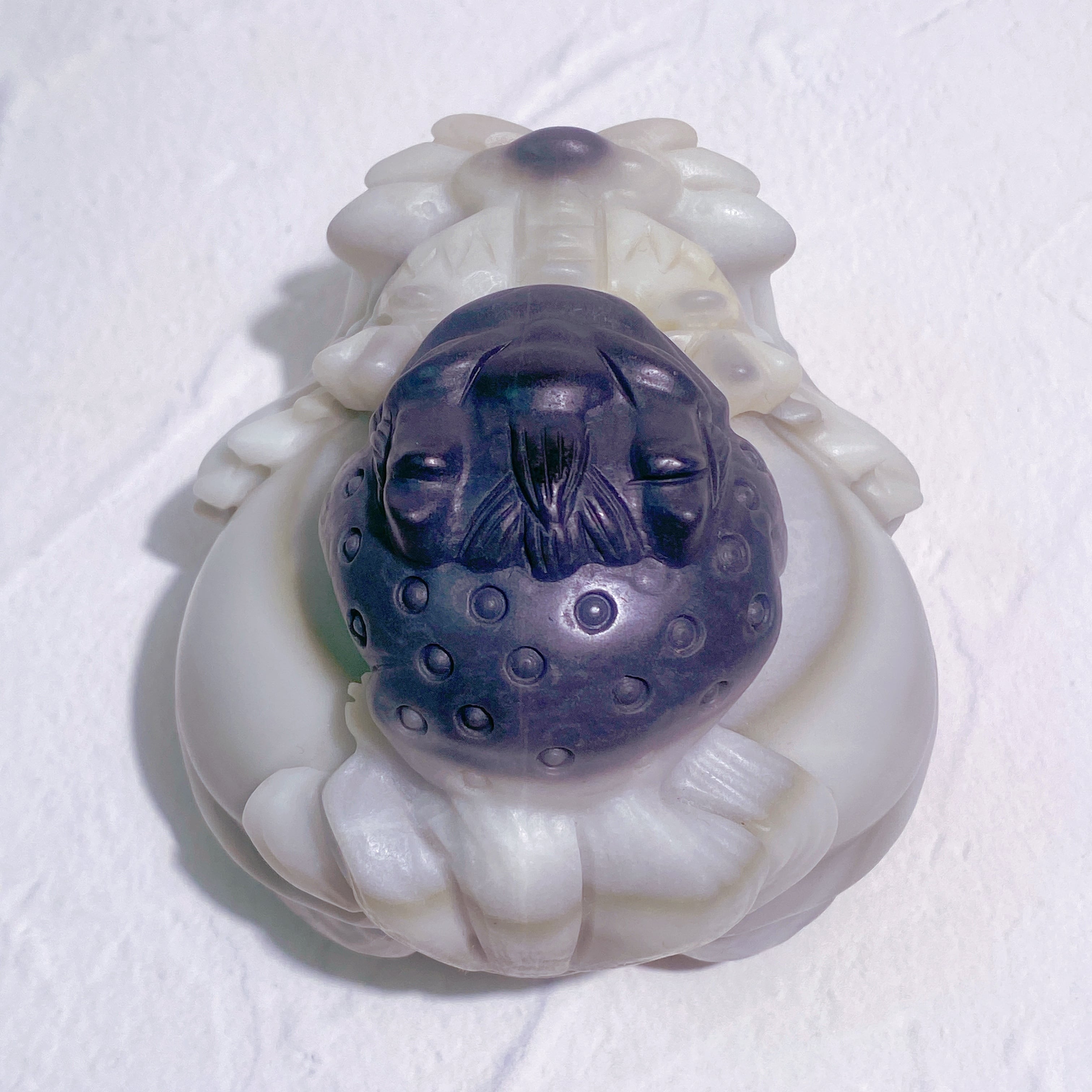 お鼻の先と背中に乗せた銭蛙ちゃんだけが見事に黒く色付いて、とってもcute♪