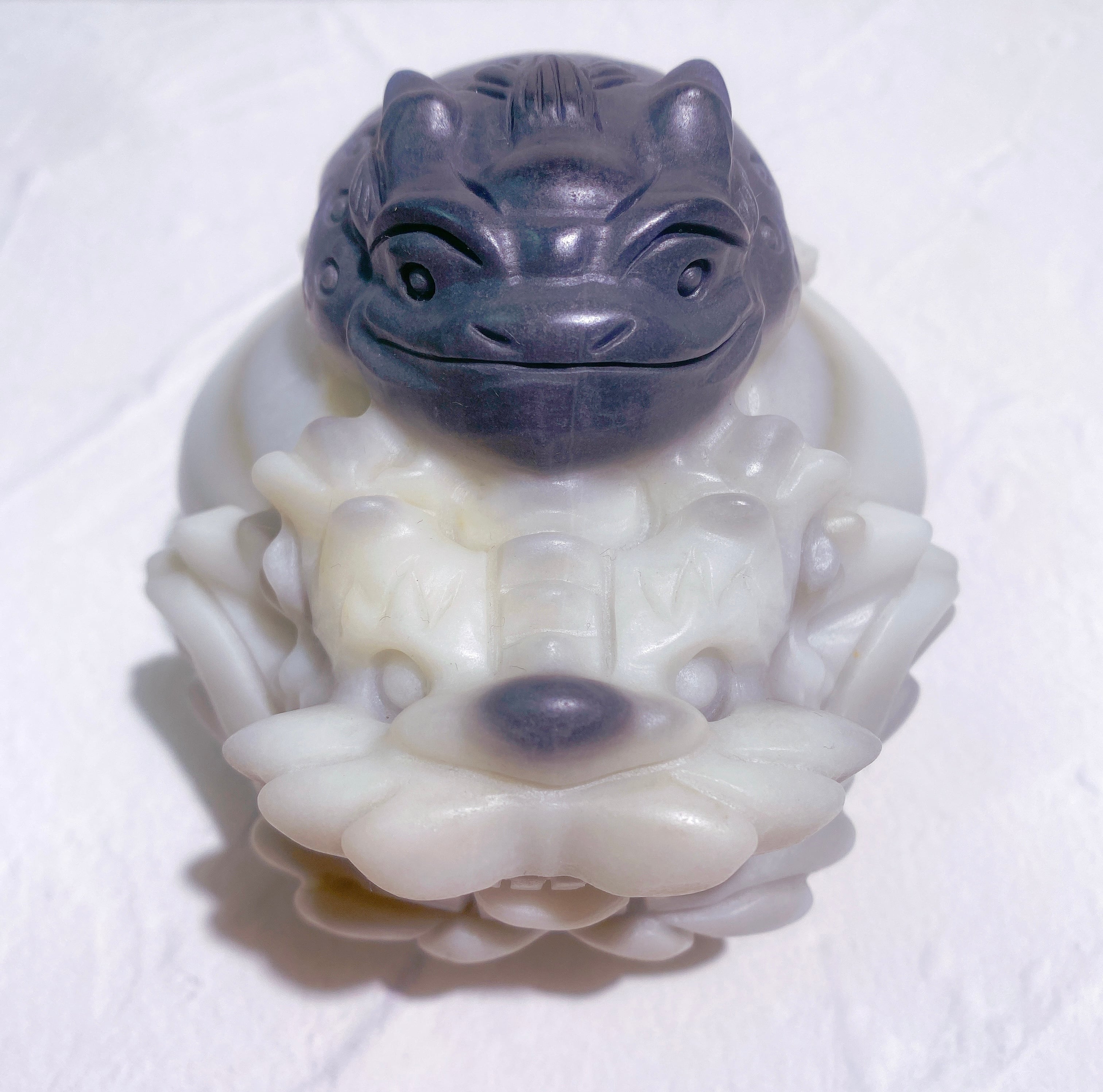 奇跡のような配色の銭蛙を乗せた太極石の龍亀ちゃんが入荷しました!